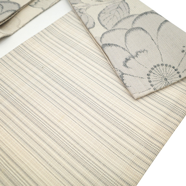 ライトグレーで辻が花や葵が織り出された 素敵なデザインです。