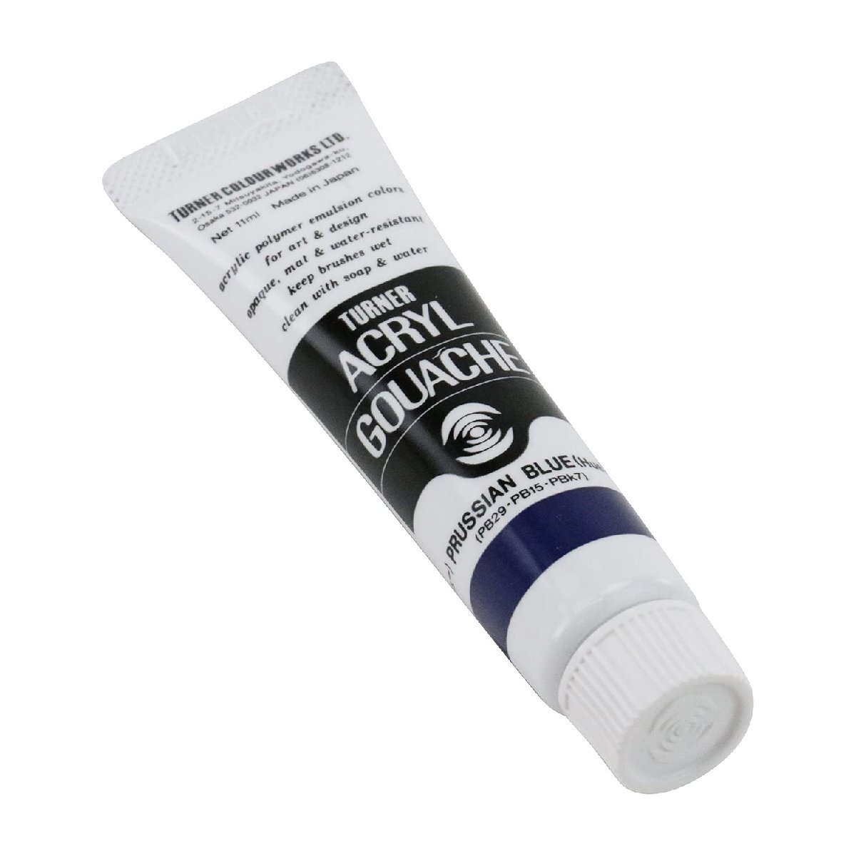 「ターナー アクリルガッシュ 11ml 54Aプルシアンブルー(ヒュー) AG011054」▼4993453140545▼(商品説明)・プルシアンブルー(ヒュー) 11ml AG011054・・Color:プルシアンブルー(ヒュー)Size:11ml・容量:11mL・カラー:プルシアンブルー(ヒュー)(54A)・乾燥時間:(指触)20分~40分・(完全乾燥)1日以上・塗料タイプ:水性、ツヤ感:ツヤ消し・性質/成分:アクリル、消防法:非該当説明 モチーフもテクニックも自由自在、ひとりひとりの創造力に応えるアクリルガッシュ 【用途】 デザイン・イラストレーション・DIY描画用 【特徴】 ・超微粒子顔料の採用により色のびのよさは抜群で、広い面も塗り直しの手間がいらず、ムラなく均一に仕上がる ・乾きが速く、思うままに効率よくスピーディな制作が可能なうえ、水性でありながら一度乾くとすぐれた耐水性を発揮し、ナキやにじみがなく、重ね塗りも自由自在なので創作意欲も一段とふくらむ ・発色の美しさが生きる不透明な仕上がりで、ベルベットのように繊細で落ち着いた質感が表現の幅を広げる ・これまでの常識を超えてさまざまな素材(紙・粘土・アクリル板・石・メタル・木・布)に描ける、頼もしい接着力 ・綺麗で鮮やかな色