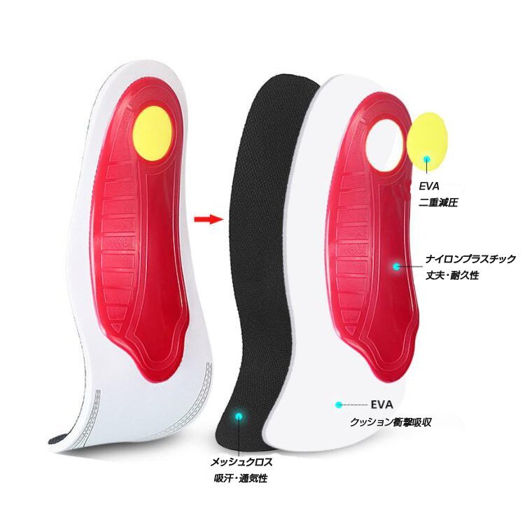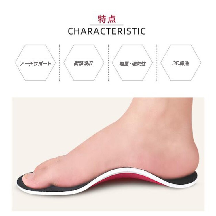 ※インソールは厚みがありますのでピッタリの靴に敷くときつくなる可能性があります。余裕のある靴に使用することをを推奨します。