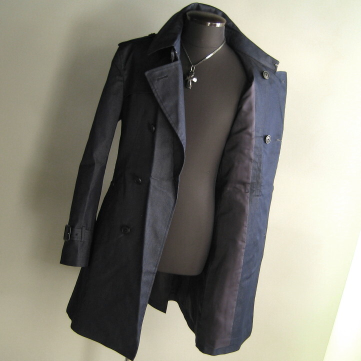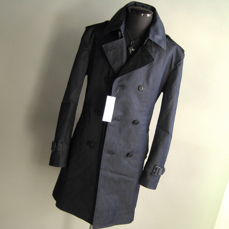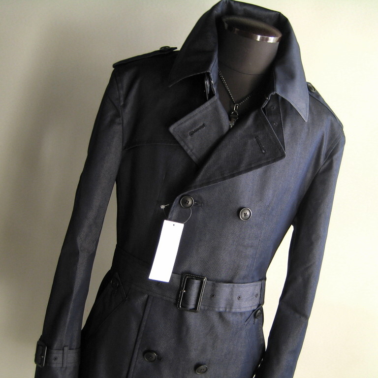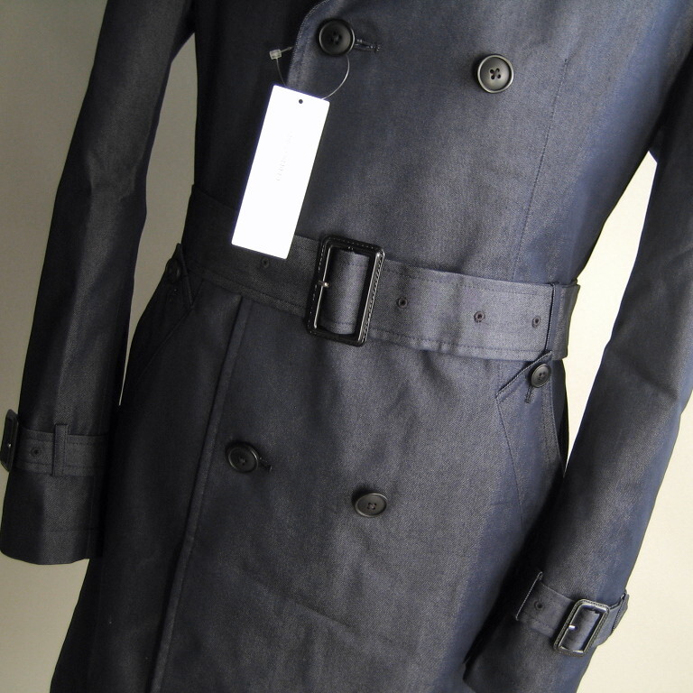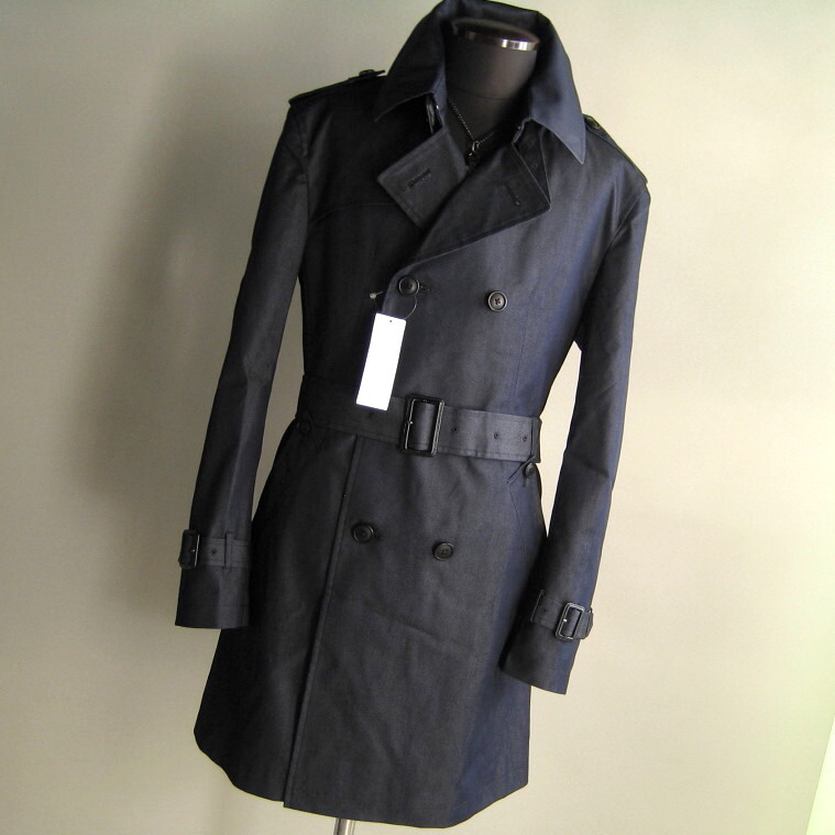 3.5万 新品 ハイストリート L T/CシャンブレーWトレンチコート ネイビー サンプル 150
