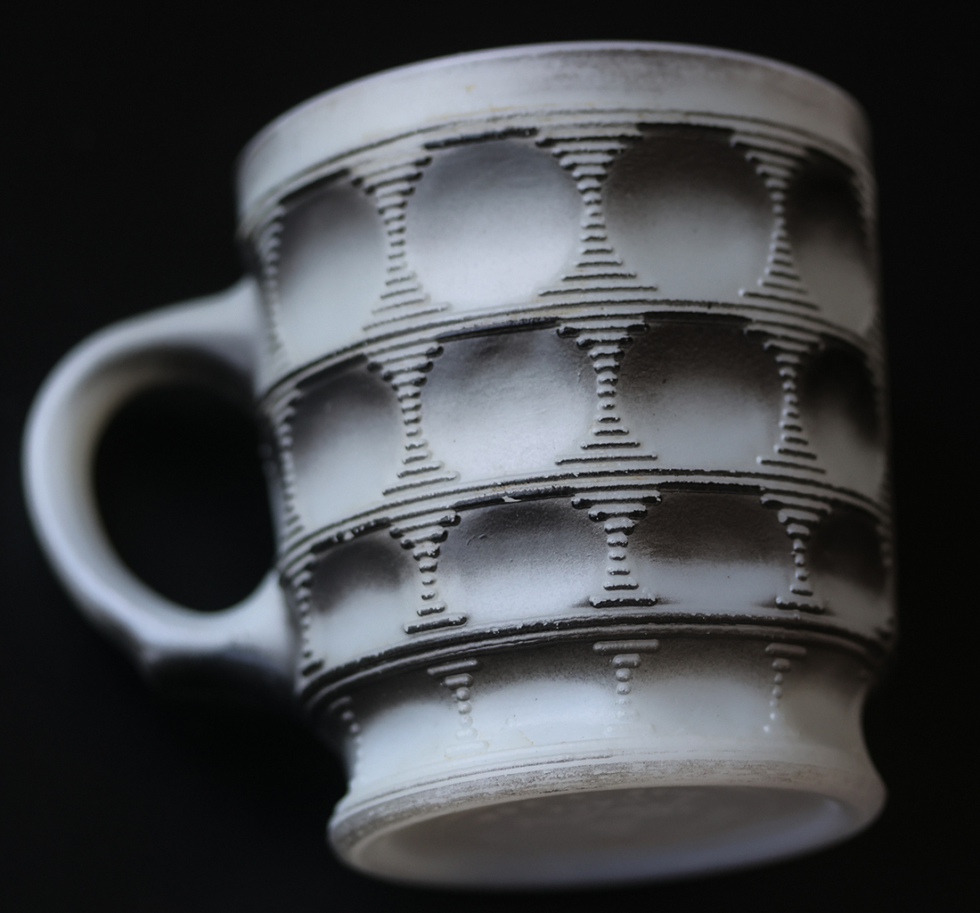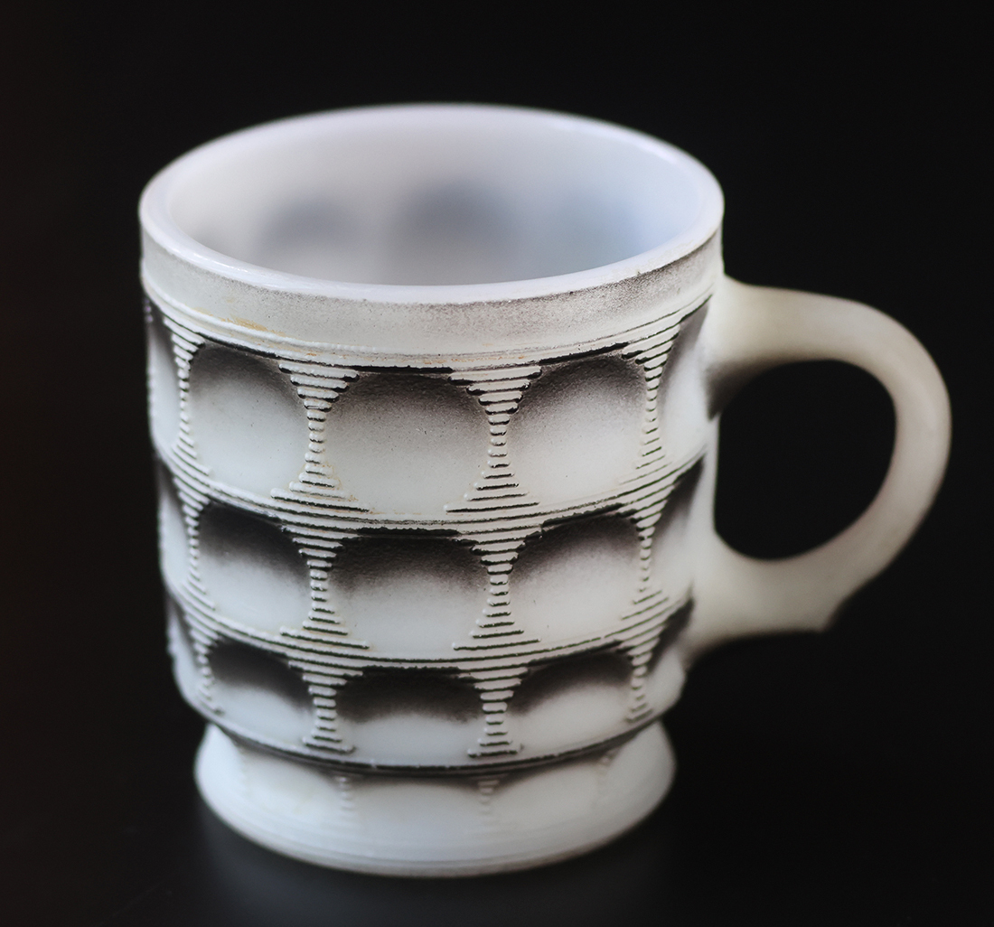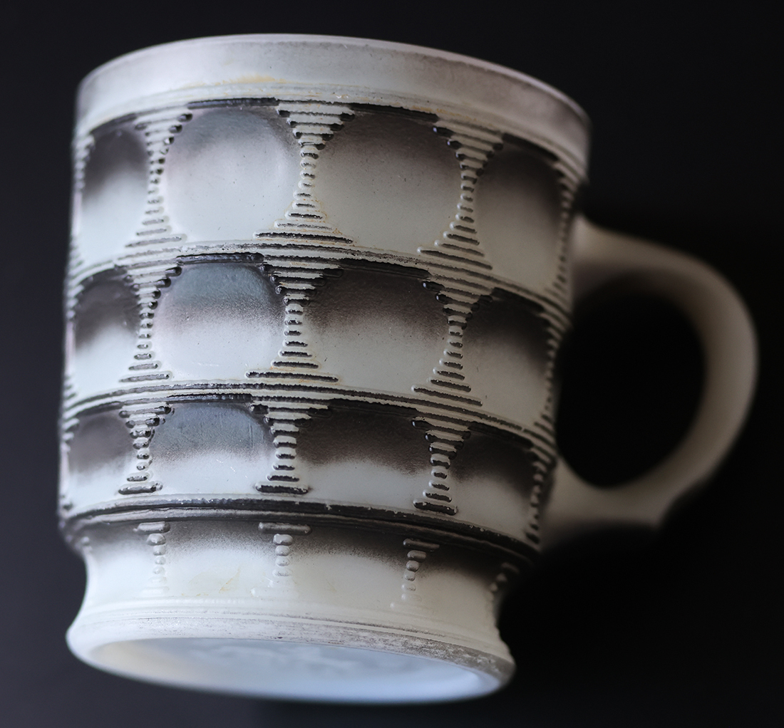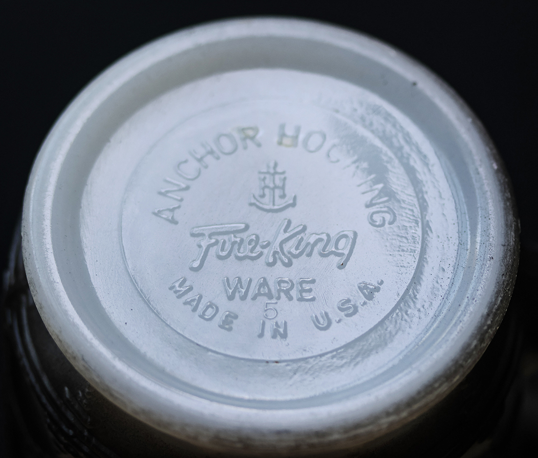 【商品の状態】 ★★★★★★ 製造年:1960年代 刻印:Fire King 内径7.2cm 高さ8.8cm とても状態の良いオリジナルファイヤーキングのキャメロットブラックマグです。 ヒビ、カケなく、ツヤがあり、使用感もなくミントコンディションです。リムのざらつきもなくとても艶やかで未使用の状態です。 底にはファイヤーキングの刻印があります。 60サイズでの発送となります。送料は料金表をご確認くださいませ。K931-4 |