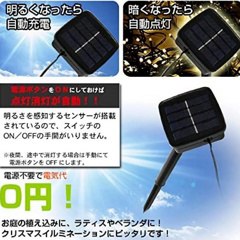 LED200球、長さ20M(電源コード2M、合計22M)、点灯モード8種類、ソーラー充電式で長い時間お使い頂けます。