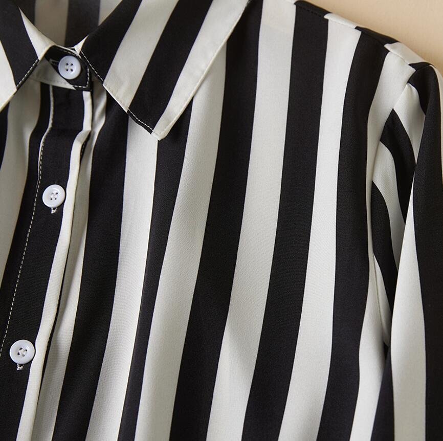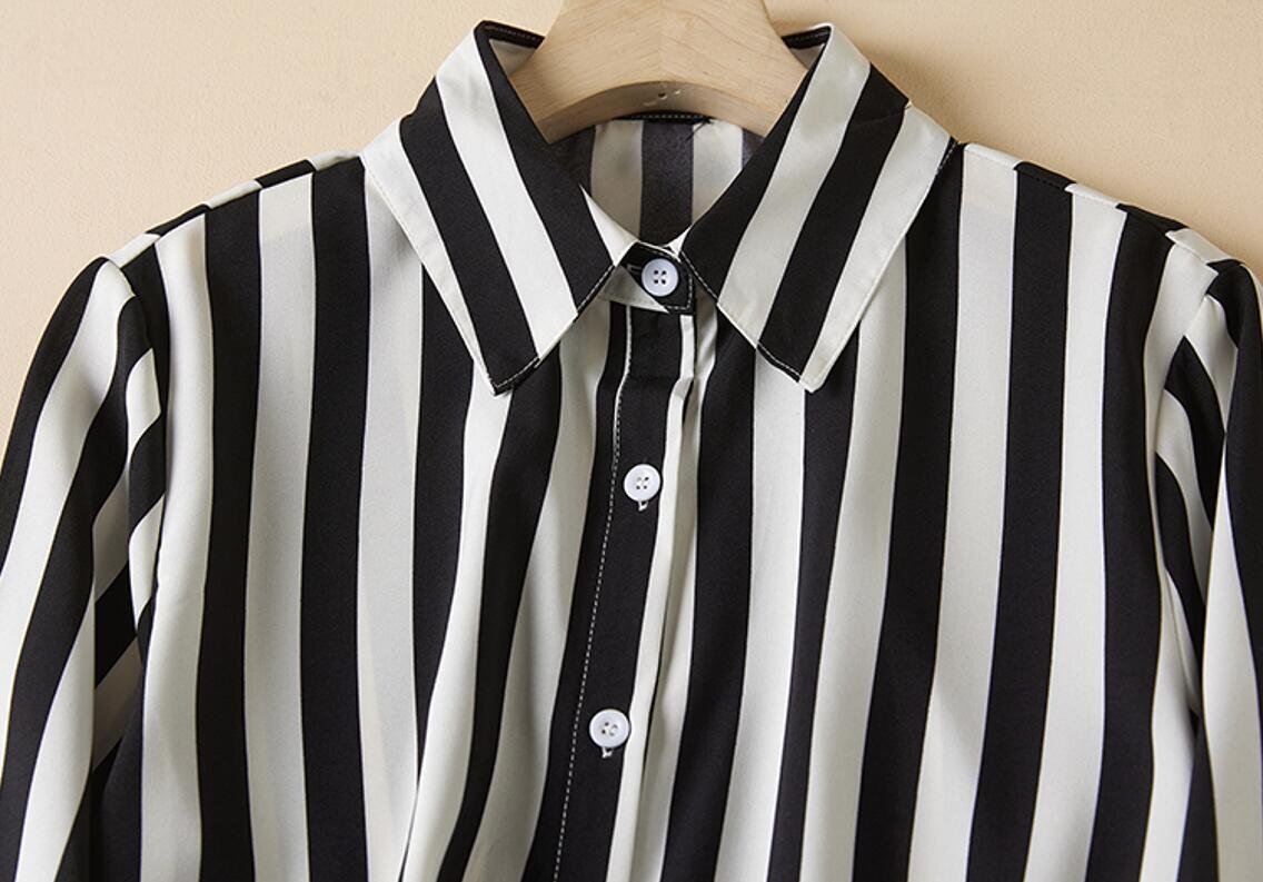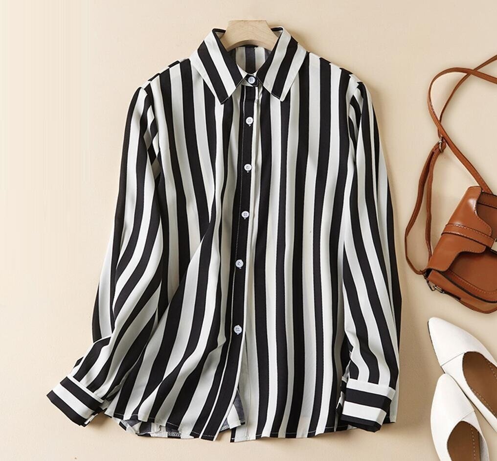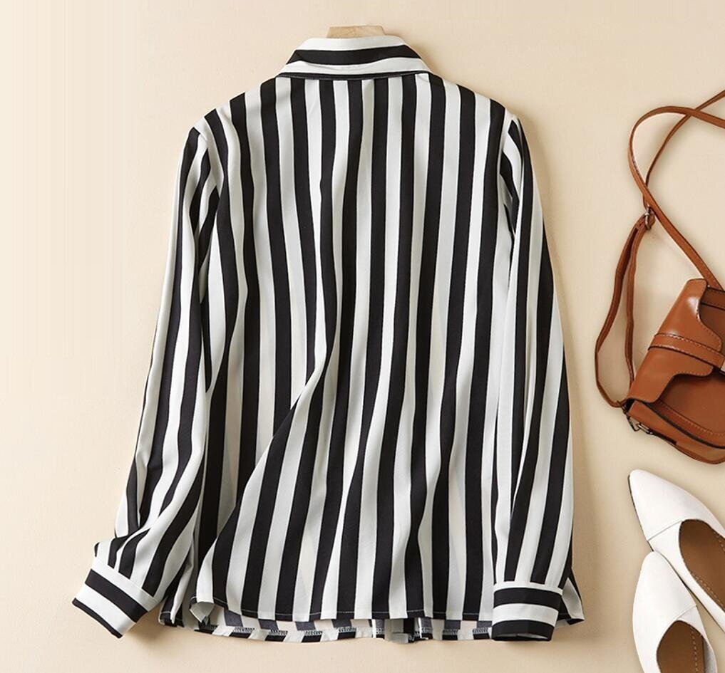 秋新品 ブラウスシャツ 長袖 レディース ボーダー柄 トップス ゆったり大きいサイズ オフィス 通勤大人 ★XLサイズ
