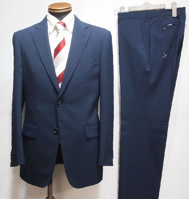 新入荷■こだわり商品■5636■背抜きスーツ 本台場・本切羽 ノータック スタィリシュ2っ釦スーツ■YA7■ネイビー■ストライプ■