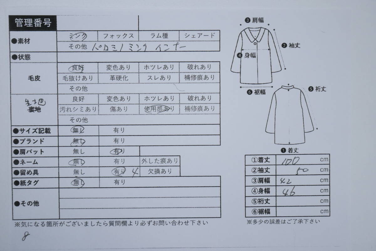 ☆パロミノミンク(インナー仕様)☆ロングコート☆着丈100cm☆レアデザイン☆