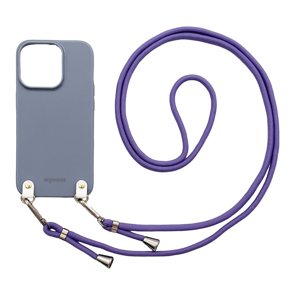 iPhone14 Pro アイフォン14プロ(くすみブルー/パープル)ひも TPU ストラップ 肩掛け 首かけ 斜めが スマホケース かわいい