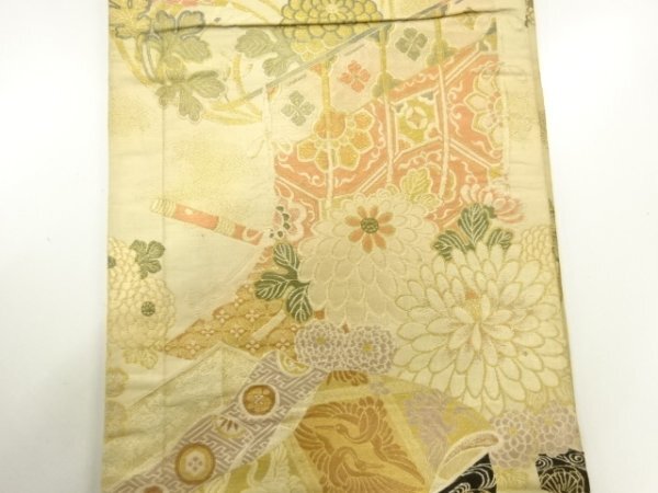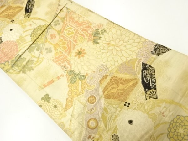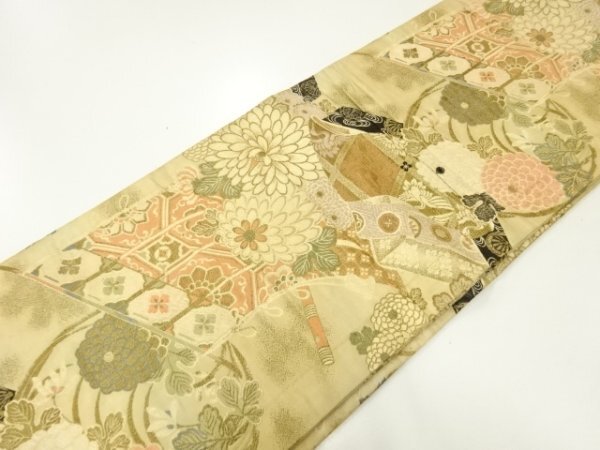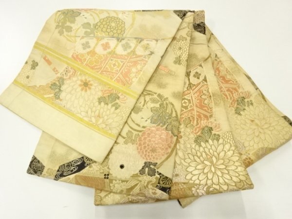 ys7503506; 几帳に菊模様織出し丸帯(材料)【アンティーク】【着】