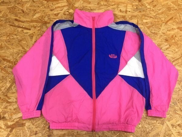 BELLE ELLENSON ベルエレンソン ブルゾン ナイロンジャケット メンズ 大胆切替 ロゴ刺繍 ハイネック オールドレトロスポーツ 古着 ピンクです。