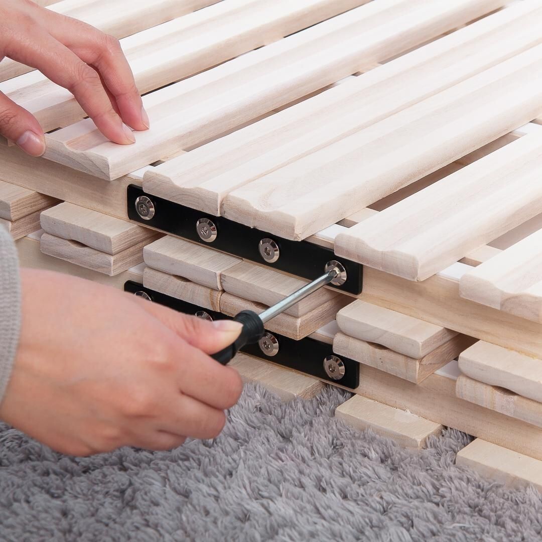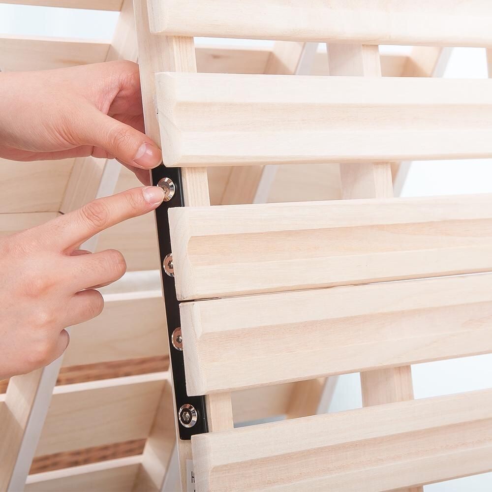桐すのこ28枚、ばっちり安定感安全性を最大限に確保!縦型すのこベッドだから4本の底板がしっかり支えてくれるから耐久性に優れた安心設計