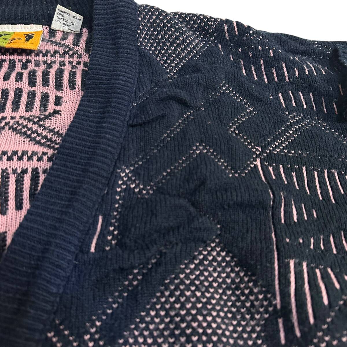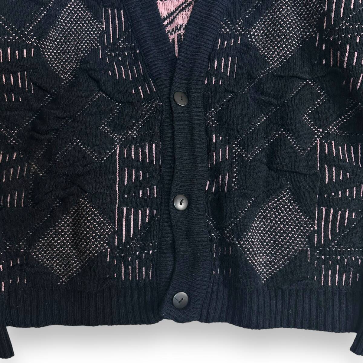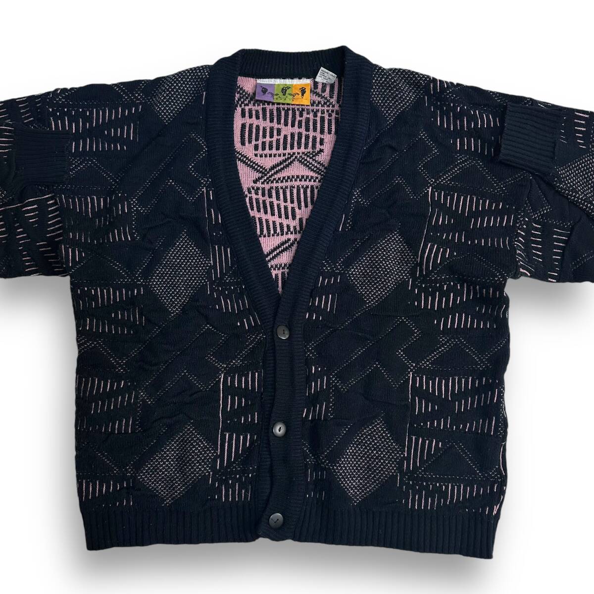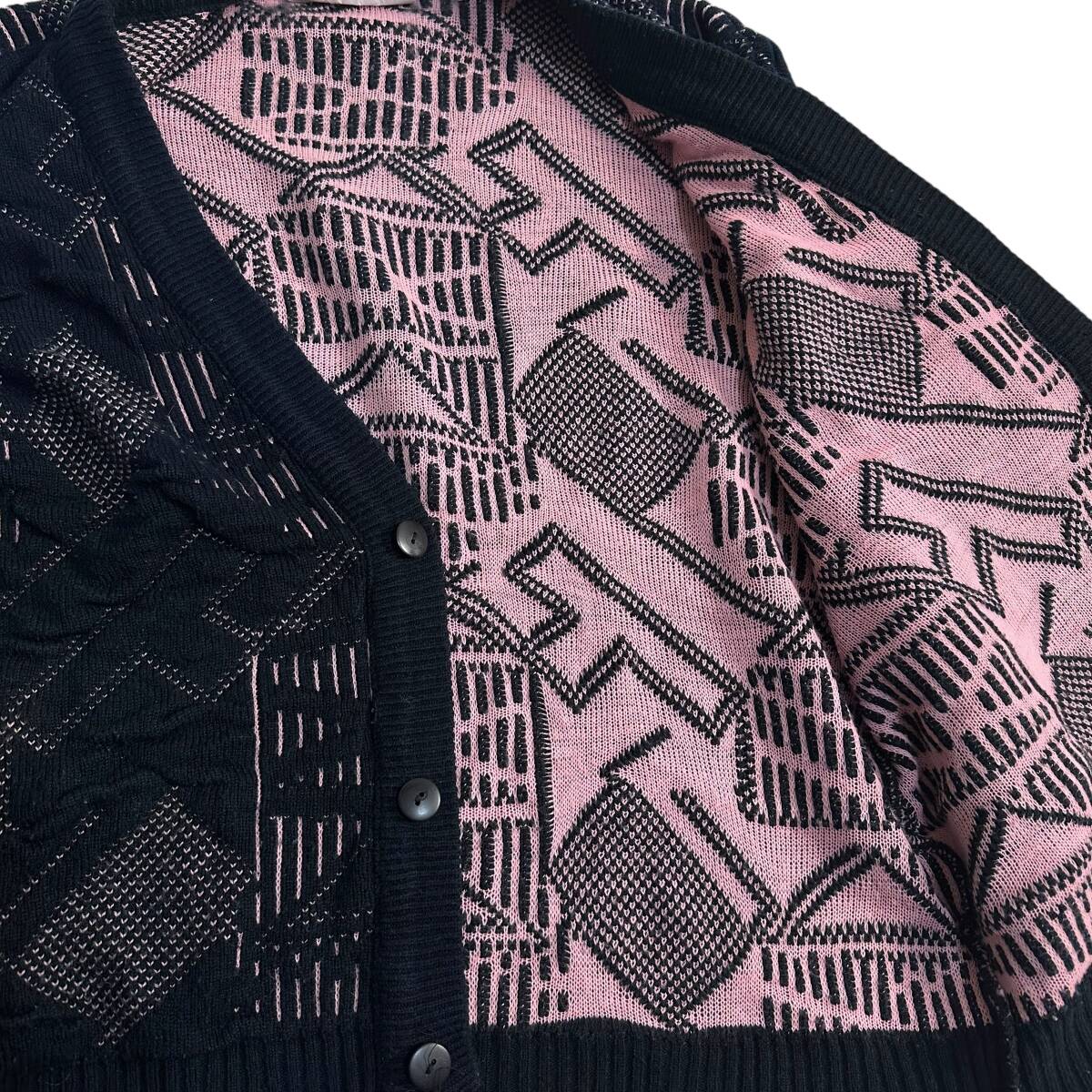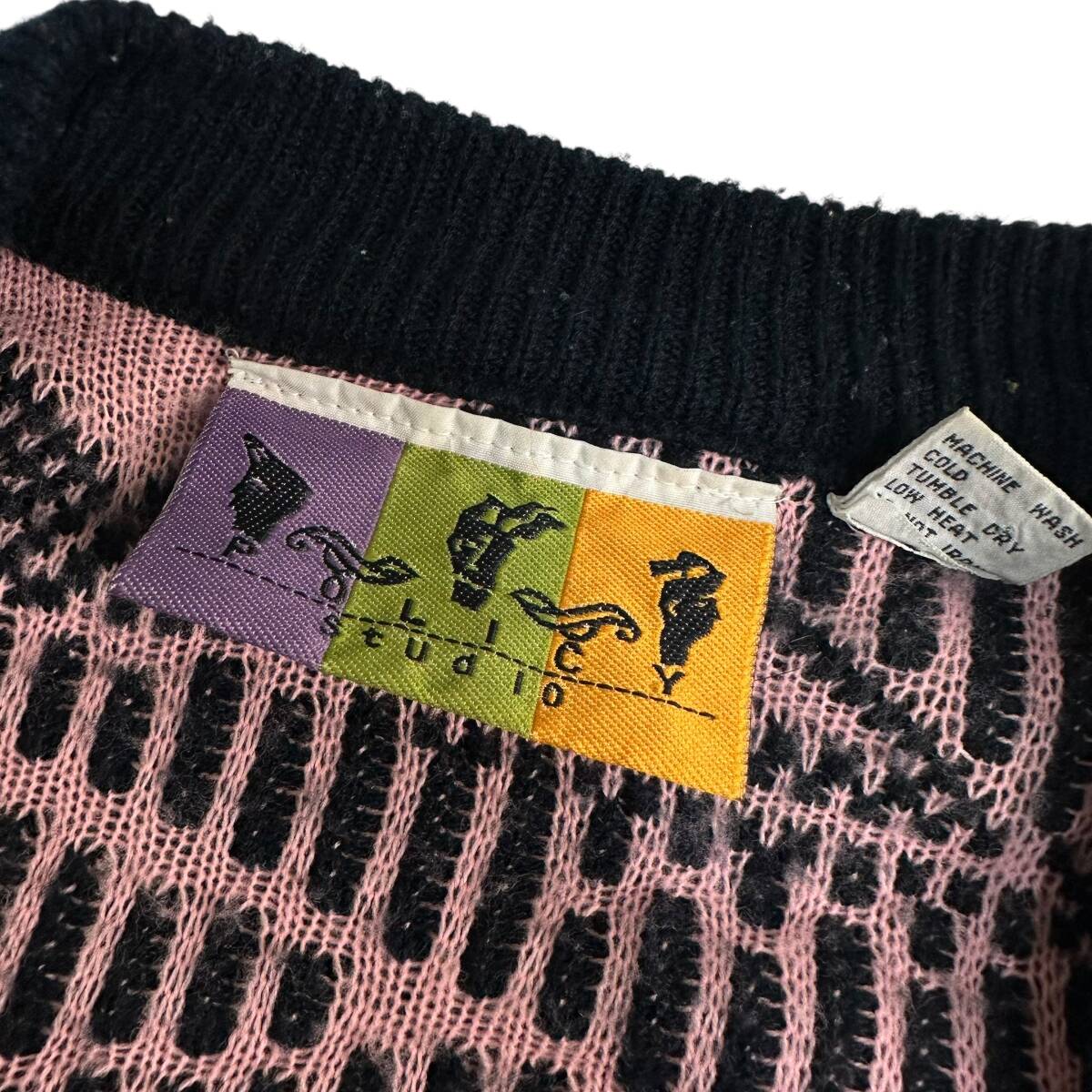 希少【POLICY STUDIO】80s 90s VINTAGE 3D Knit Cardigan ビンテージニットカーディガン 古着ミックス レトロ