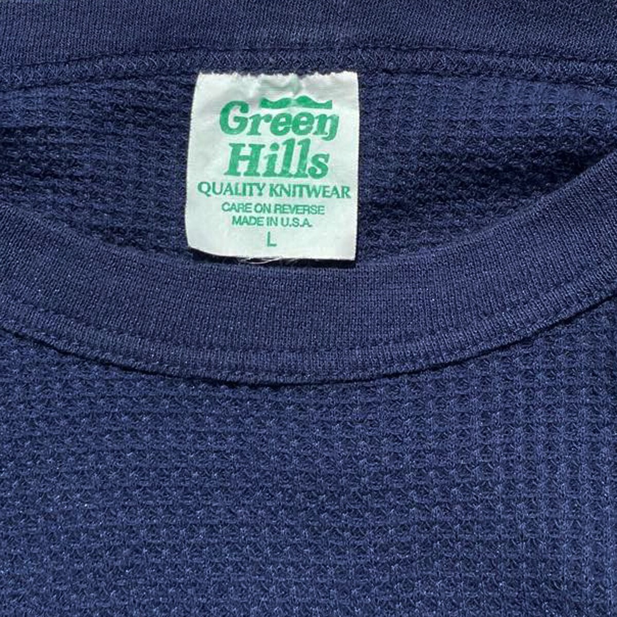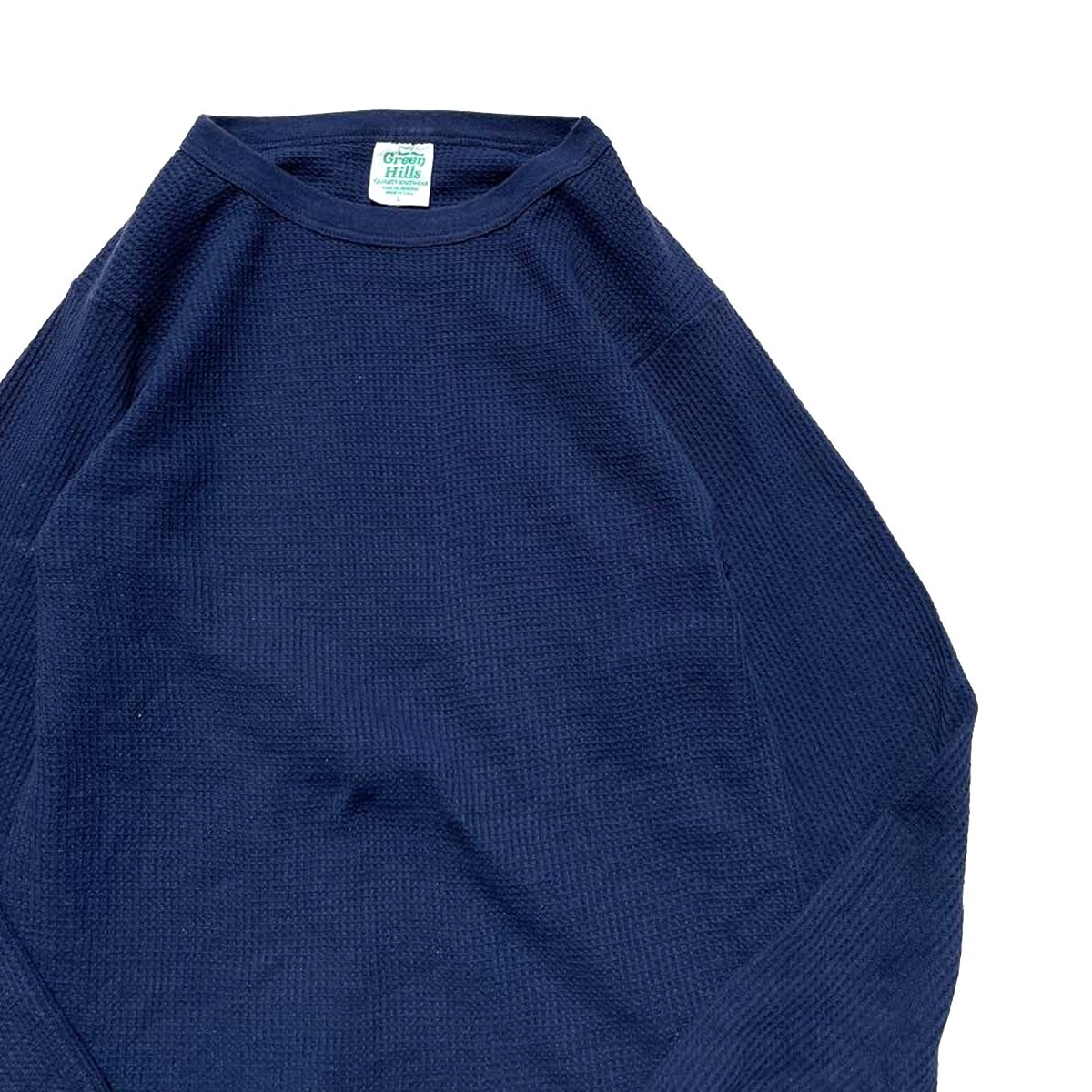 人気モデル! 90s USA製 Green Hills グリーンヒルズ ヴィンテージ 無地 サーマル 長袖 カットソー ロンT シャツ ネイビー 紺 L メンズ 希少