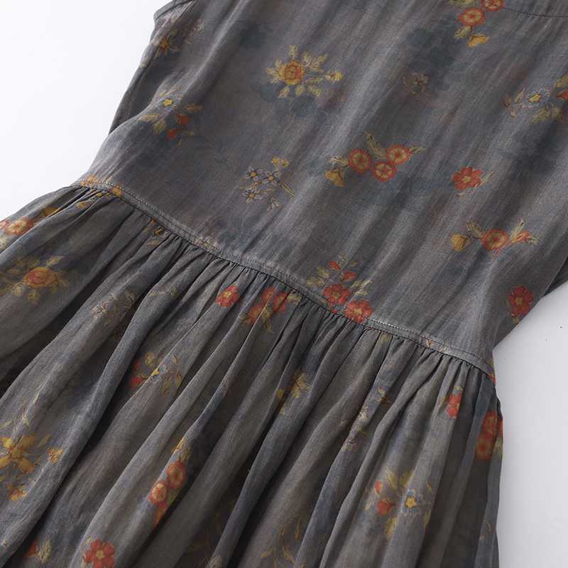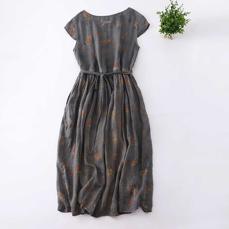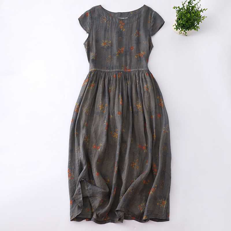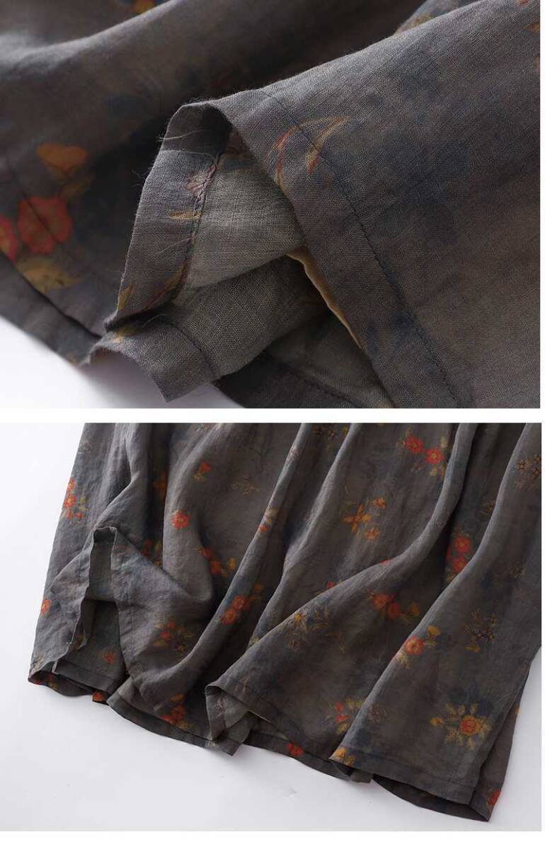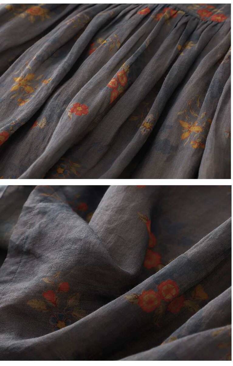 グレー地にお花柄がレトロでおしゃれなワンピです。