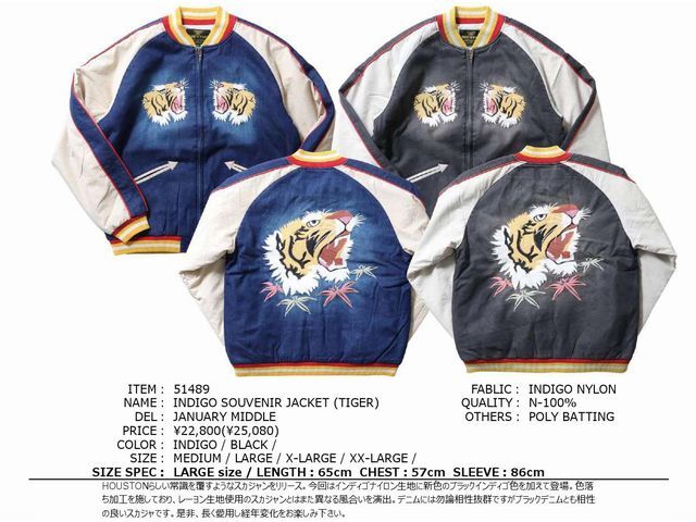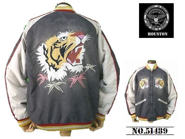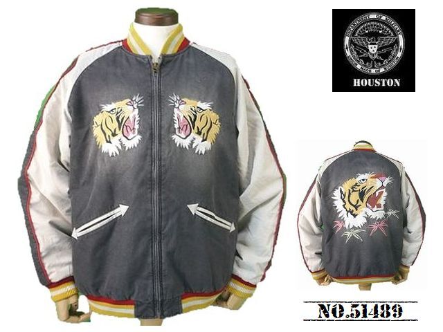 【送料無料 48%OFF】HOUSTON ヒューストン インディゴ スカジャン SOUVENIR JACKET 「TIGER」 NO.51489 BLACK_Lサイズ (汚れ特価)