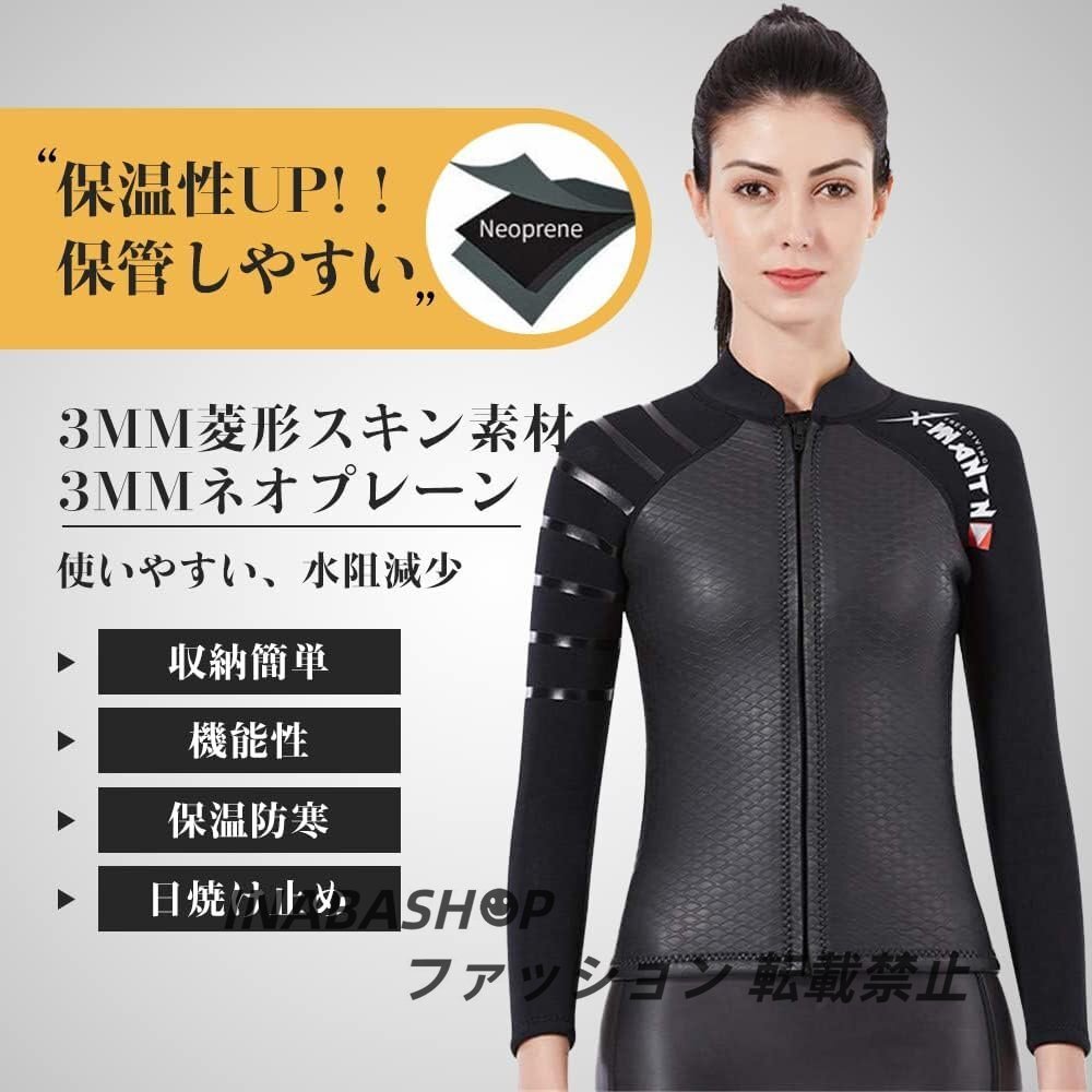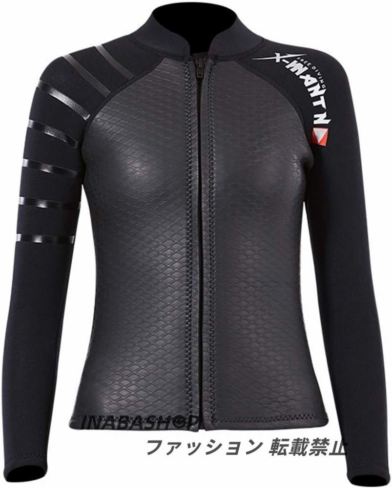 ウェットスーツ ダイビングジャケット 3mmスキン素材 長袖 フロントジッパー ダイビング シュノーケリング サーフィン 素潜り レディース