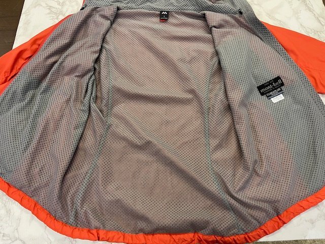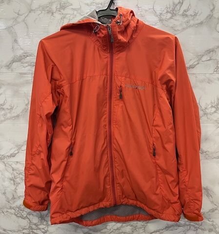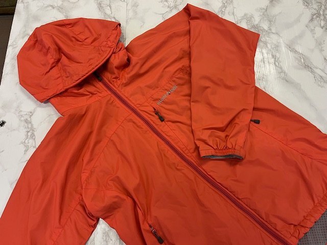 ★メーカー:モンベル ★モデル:ライトシェルパーカ ★品番:1106291 ★サイズ:S ★実測値:着丈-約64cm、身幅-約48cm、袖丈-約50.5cm(平置きにて実測) ★カラー:オレンジ(画像の色味と実物の色は少々異なります。画像2-3枚目の色味が実物の色に一番近いです。) ★素材:表地-ナイロン100%、裏地-ポリエステル100% ※中古品 |