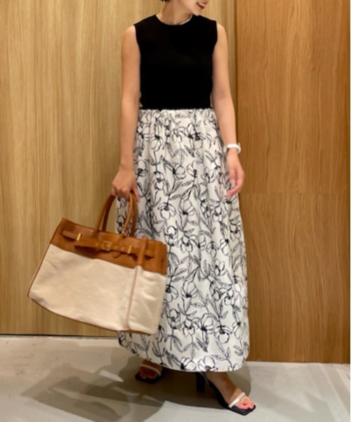 キーワード:ワンピース ノースリーブ フレア ロング 無地