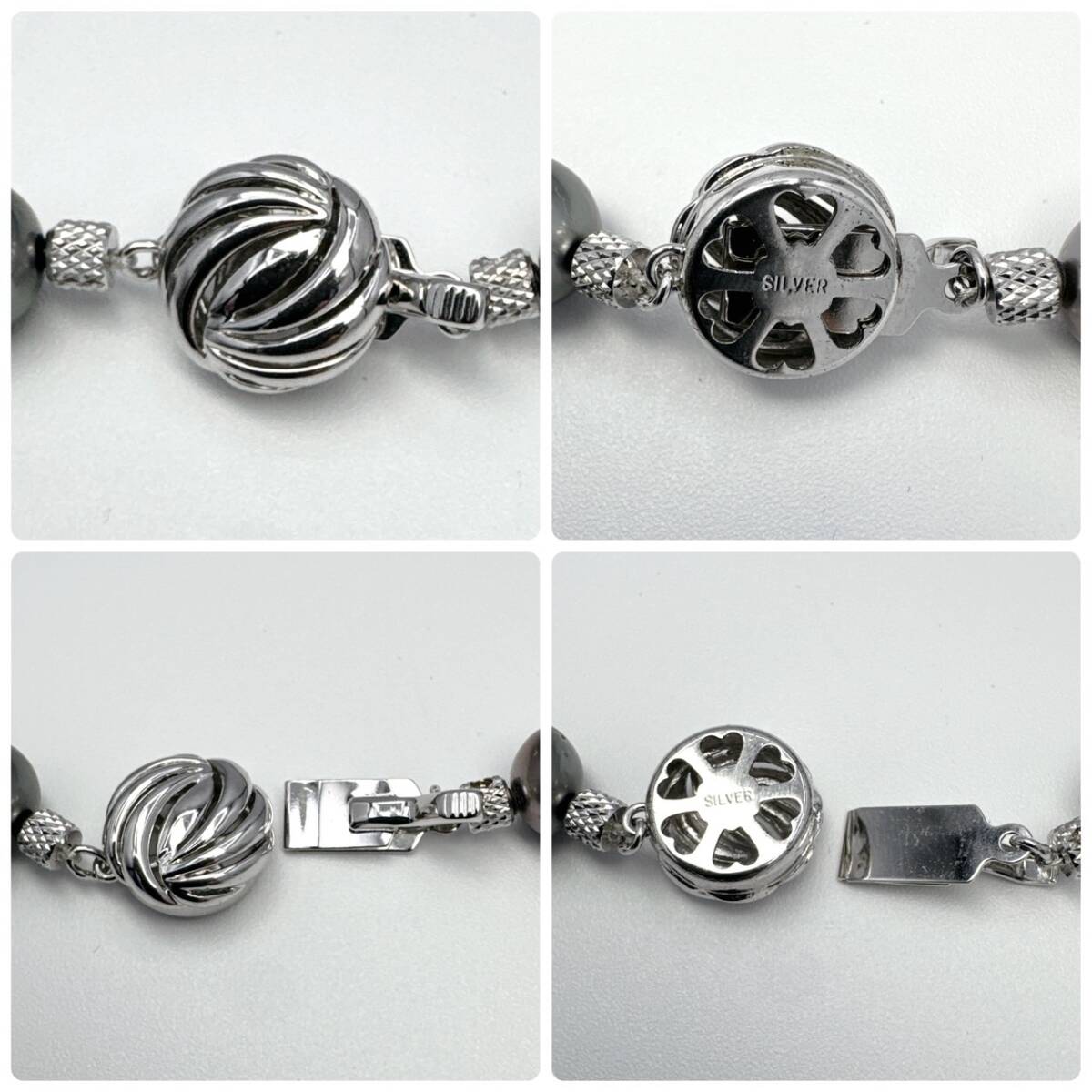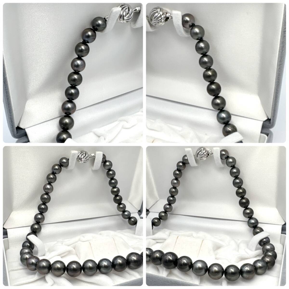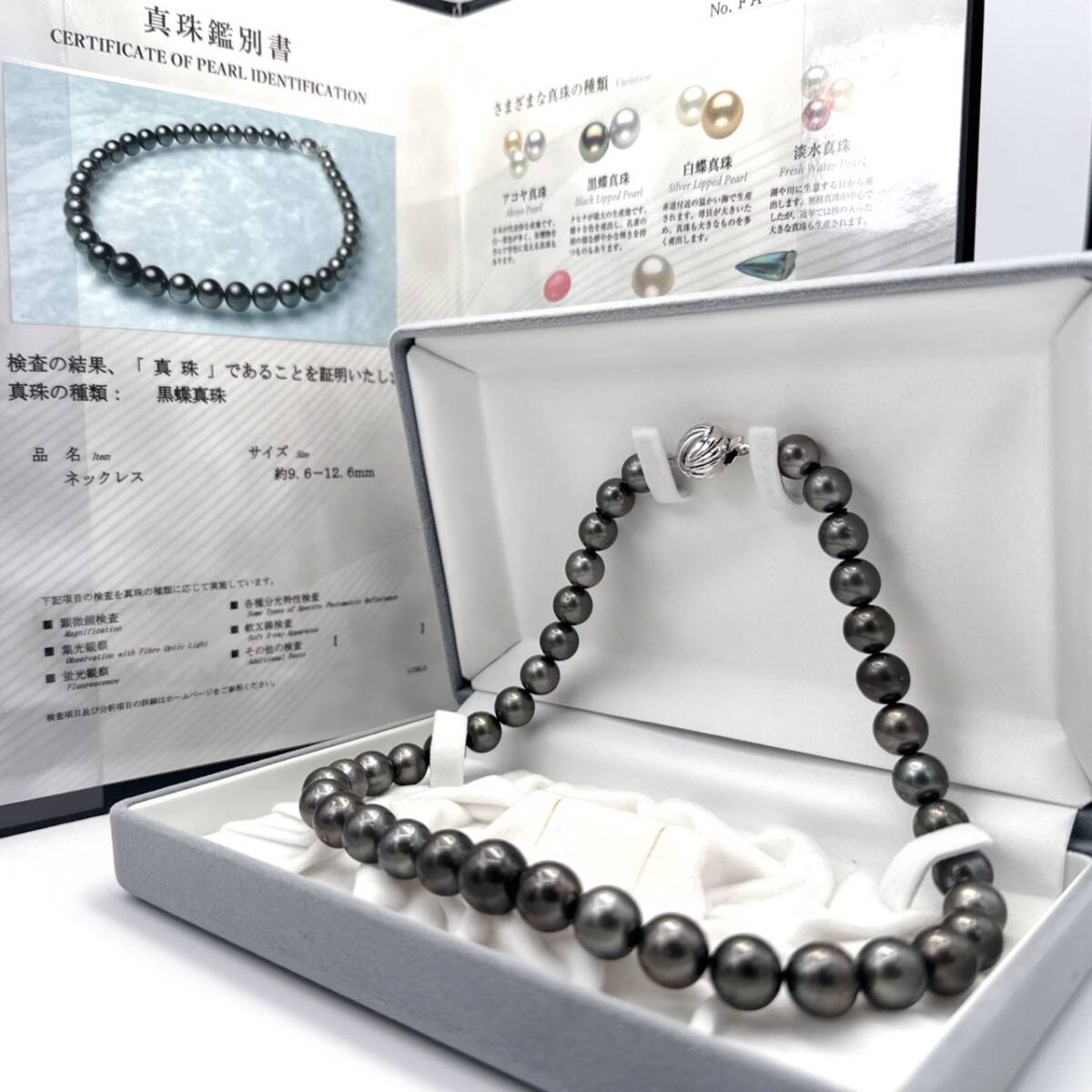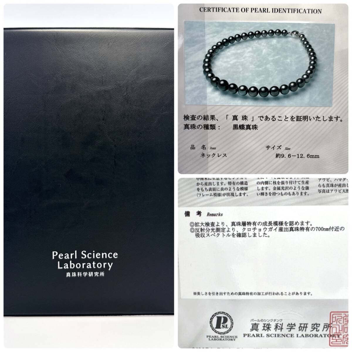 ● 【真科研 鑑別書付き】 オーロラピーコック 9.6-12.6mm 黒蝶真珠 ネックレス SILVER刻印 44.5cm 72.9g 真珠科学研究所 クロチョウ パール 2SEND-33000