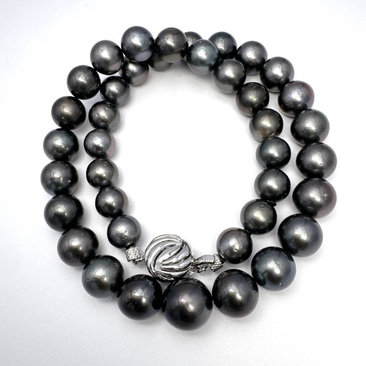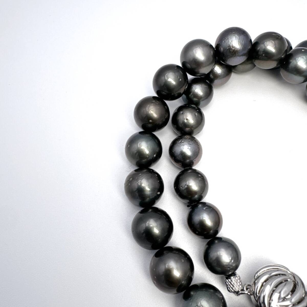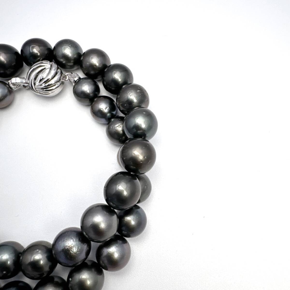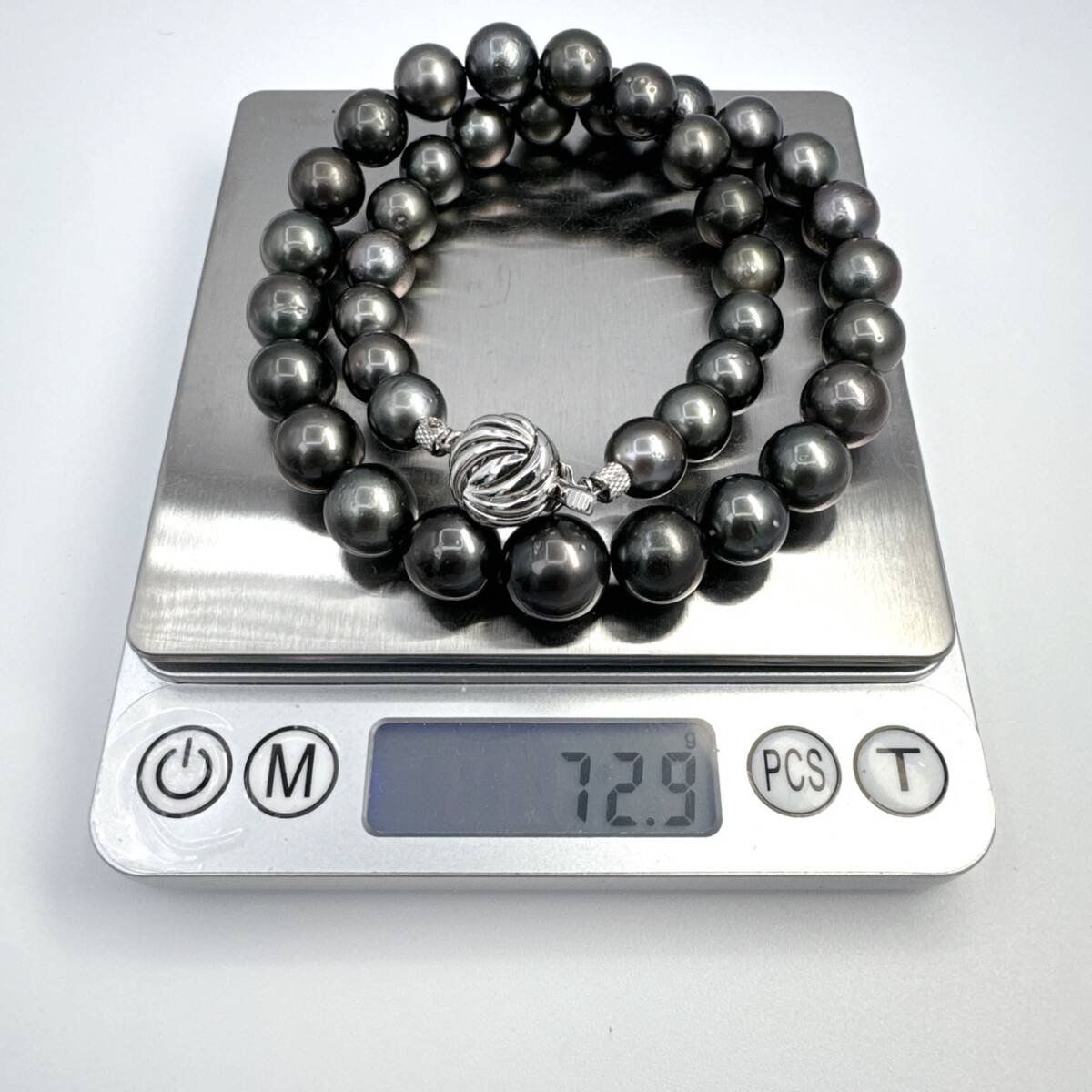 ● 【真科研 鑑別書付き】 オーロラピーコック 9.6-12.6mm 黒蝶真珠 ネックレス SILVER刻印 44.5cm 72.9g 真珠科学研究所 クロチョウ パール 2SEND-33000