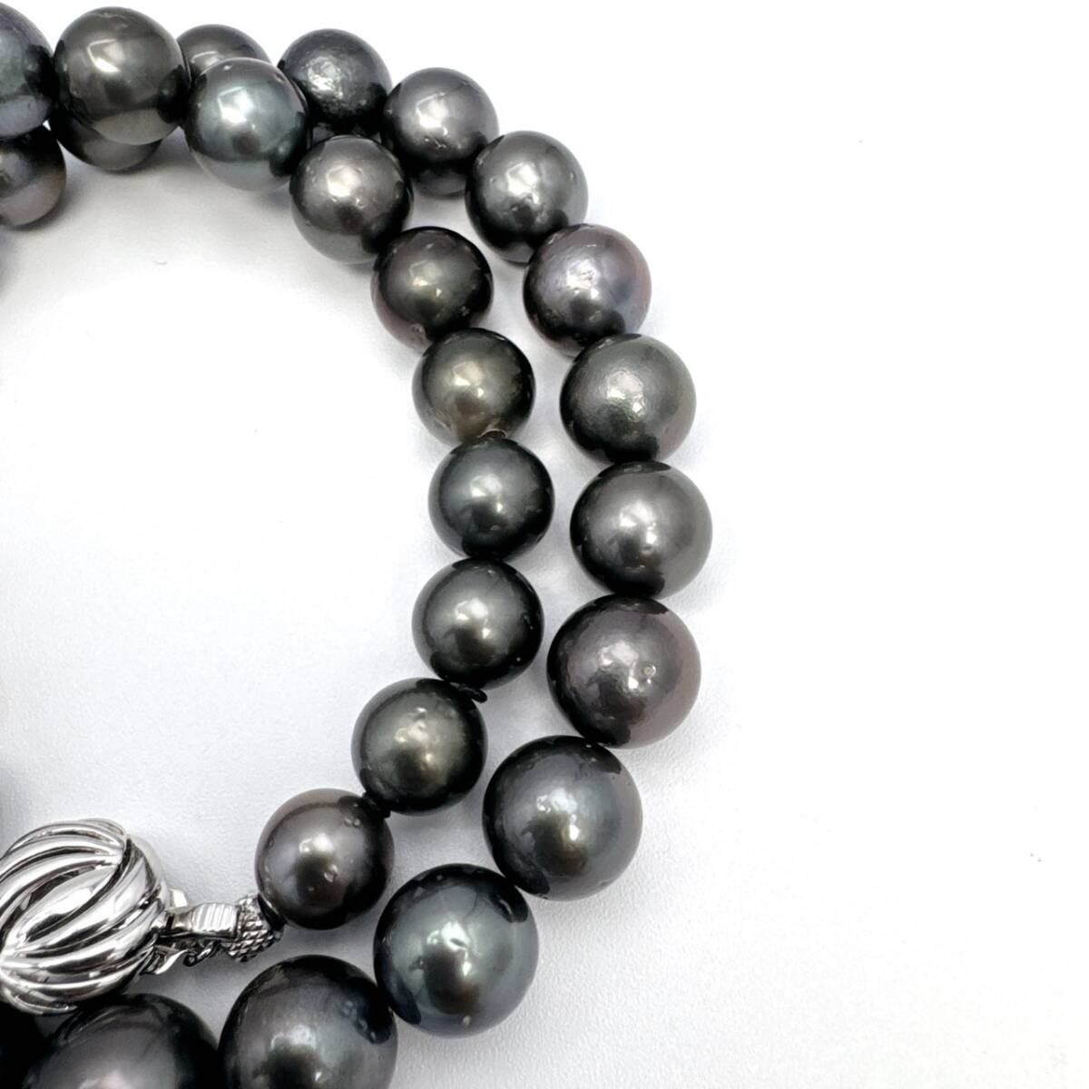 真科研鑑別書 オーロラピーコック 9.6-12.6mm 黒蝶真珠 ネックレス SILVER刻印 44.5cm 72.9g 真珠科学研究所 クロチョウ パール 2SEND