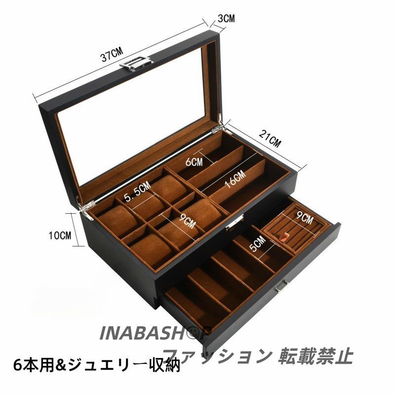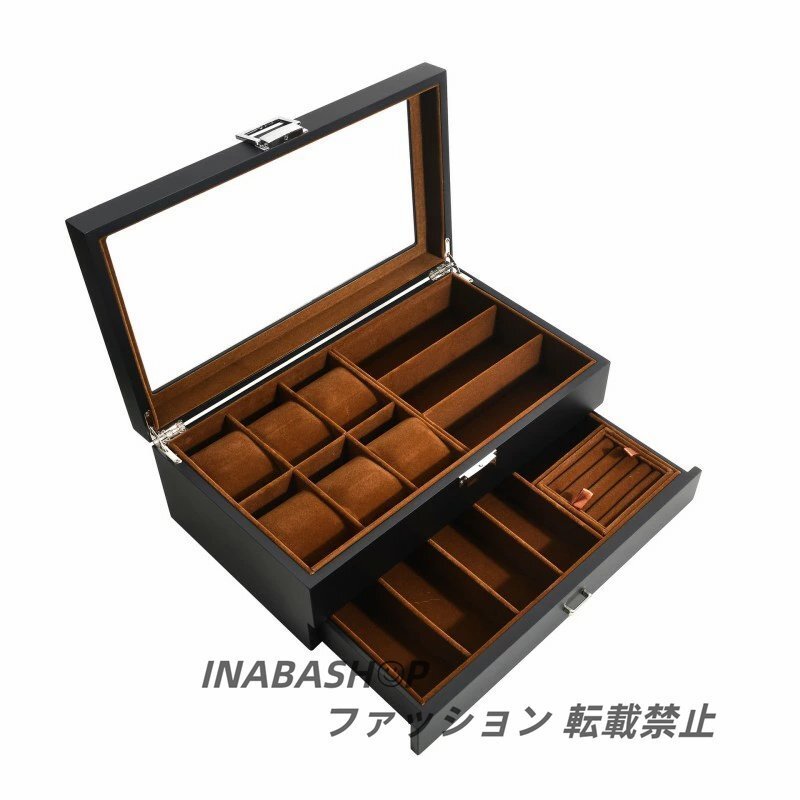 時計ケース 木製 引き出し付き 腕時計収納 コレクションケース 高級感 ジュエリーボックス 2段式 ウォッチ アクセサリー メンズ レディース