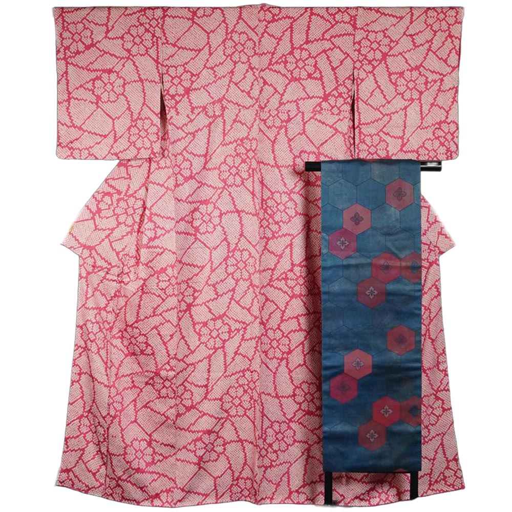 品 名 | 着物セット 総絞り 小紋・名古屋帯 2点 セット お花模様 Lサイズ 絞り 【小紋 中古 小紋着物 小紋 着物 リサイクル着物 小紋 リサイクル 着物 リサイクル小紋 リサイクル着物 正絹 】 | ||