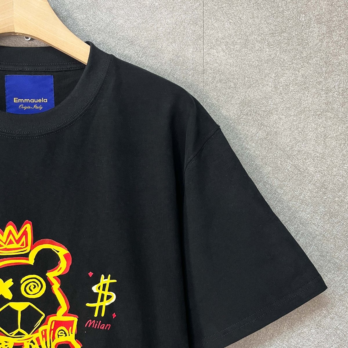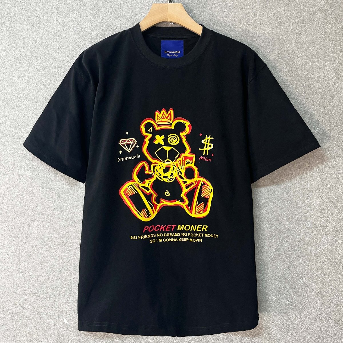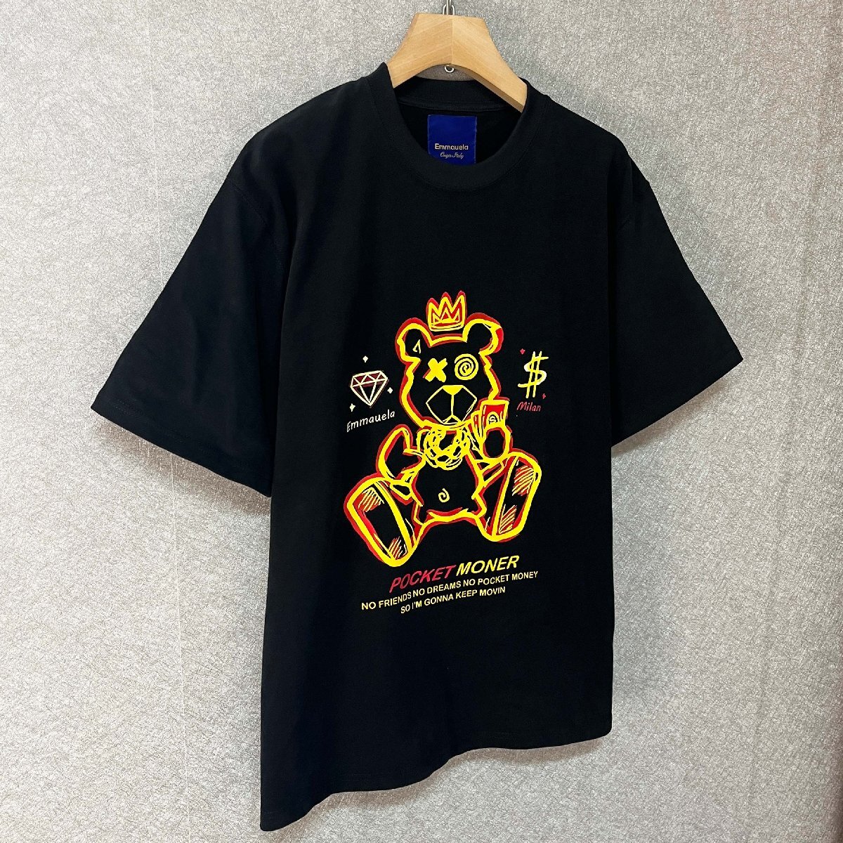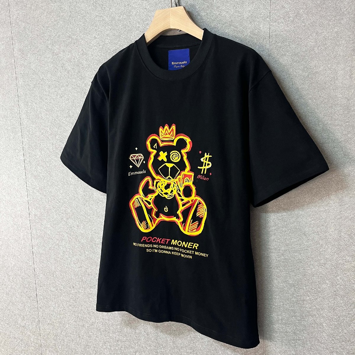 高級・半袖 Tシャツ 定価2万◆Emmauela・イタリア・ミラノ発◆コットン100% 柔らか 吸汗 クマ柄 丸首 お洒落 カットソー ストリート 日常 M/46サイズ