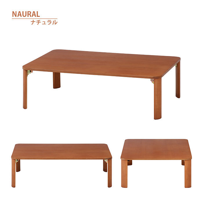 木目調のベーシックなデザインの折れ脚ローテーブルです。 底部には傷付防止材が付いています。 |