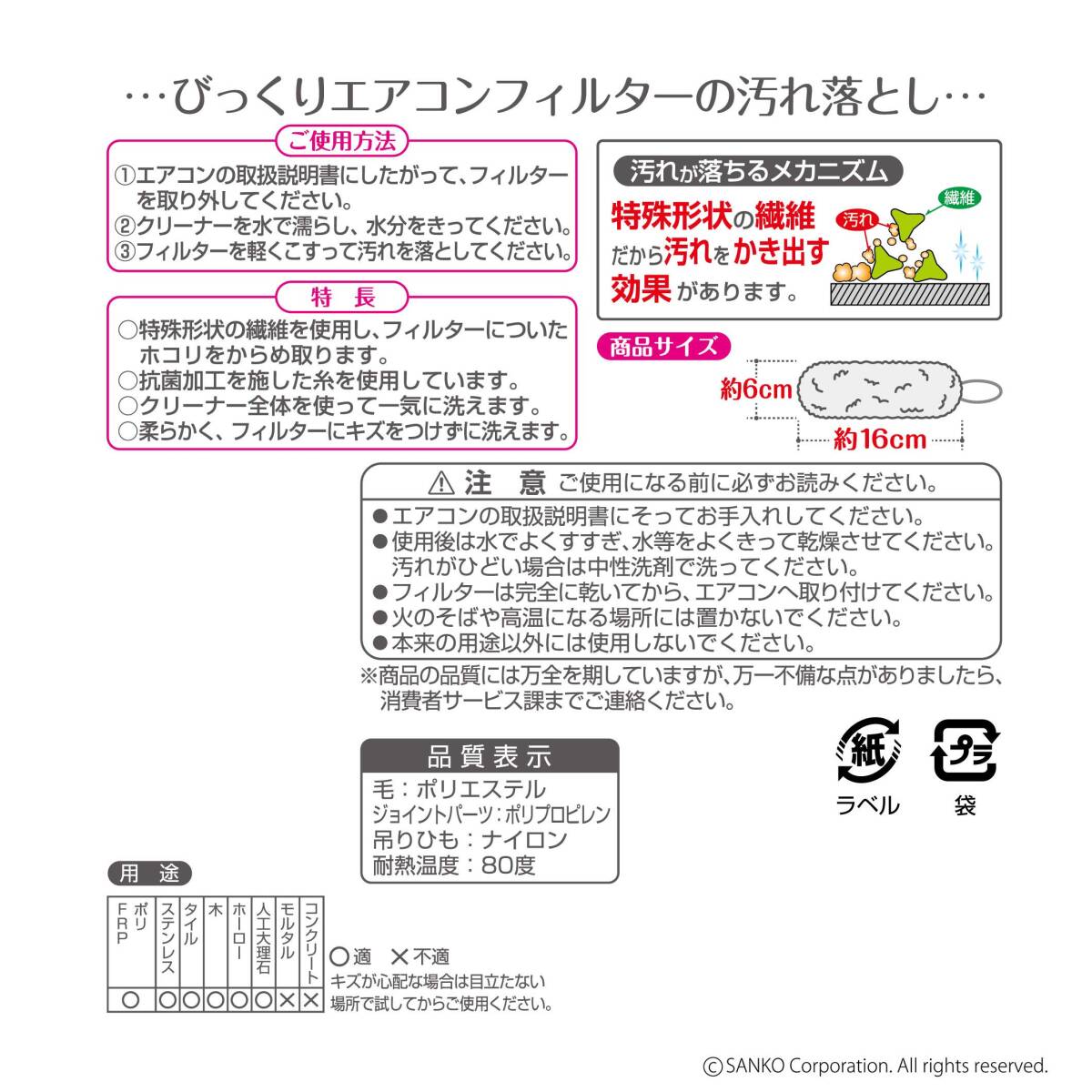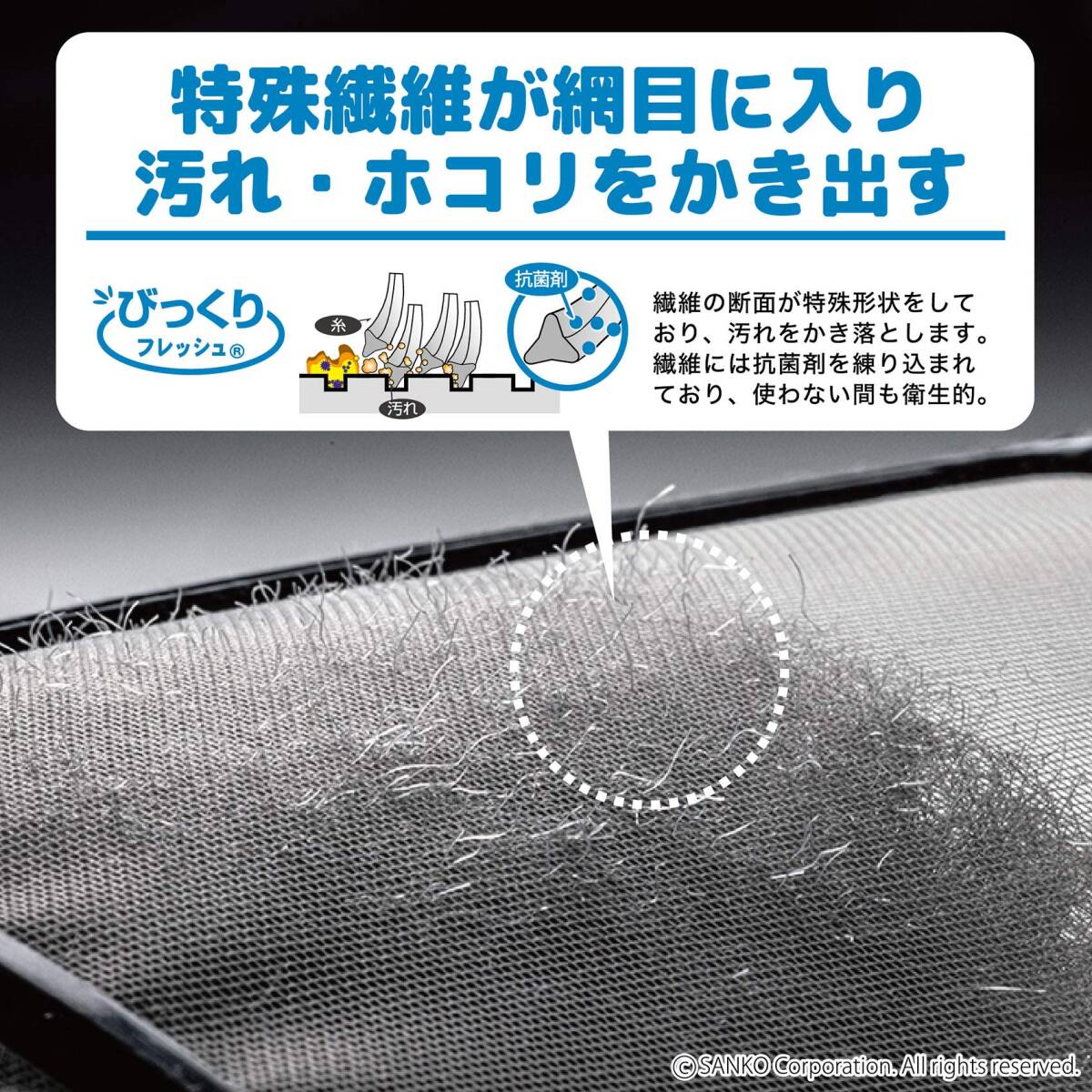 Sanko サンコー ブラシ エアコンフィルター 汚れ落とし 抗菌糸 クーラー フィルター グレー びっくりフレッシュ 日本製 BA-76 約径