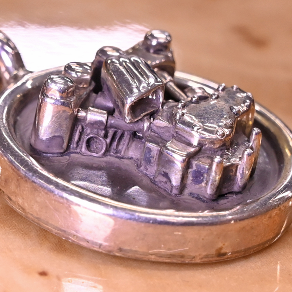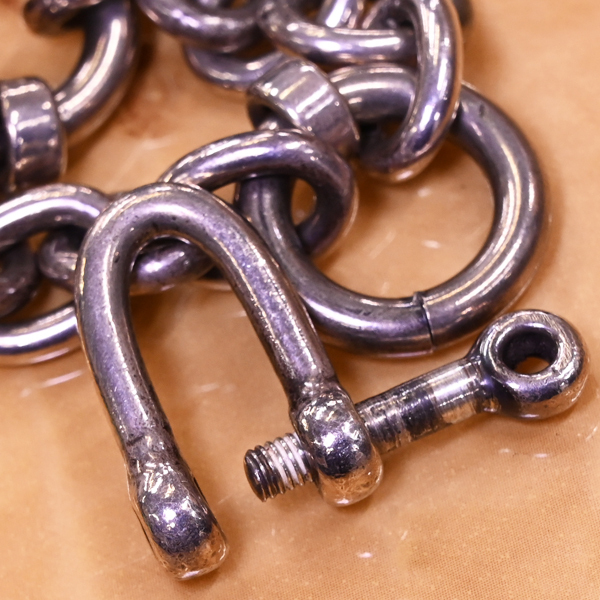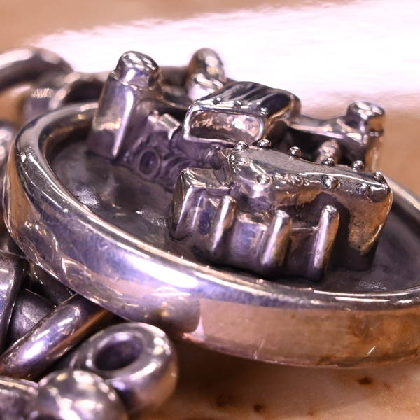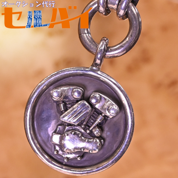 ビッグツインのスターリングシルバー925 バイクエンジン キーチェーンです。 バイカーズアイテムの製造でコアな人気を誇るビッグツイン。 立体的に造形されたバイクエンジンをモチーフトップに据えたアイコニックな逸品です。 総重量は100gを超える103.2g。 ビッグツインは今では操業を終えているのでその価値は高まるばかりです。 一点ものとなりますのでお早めにご検討下さいませ。 |
