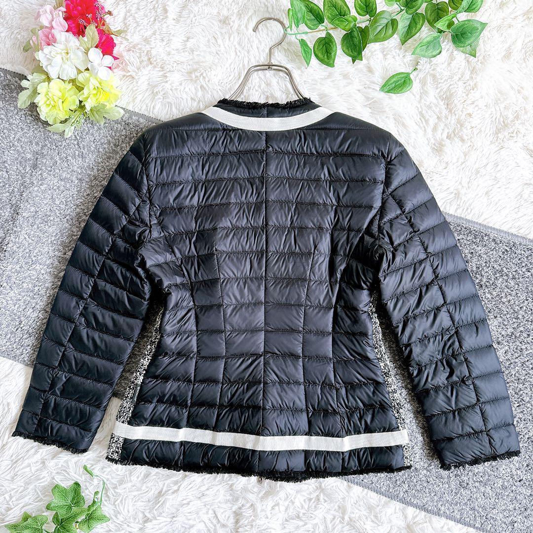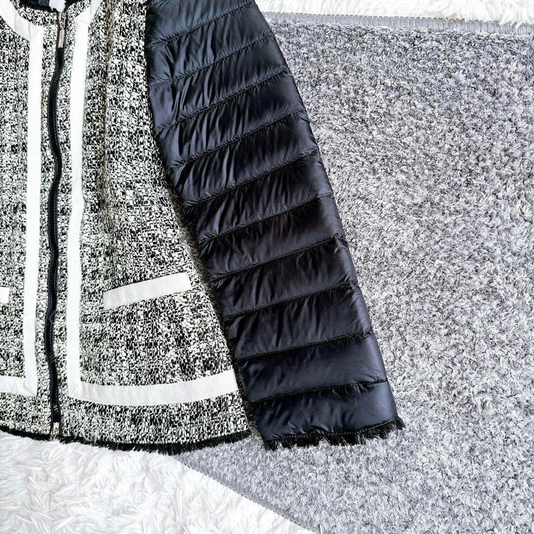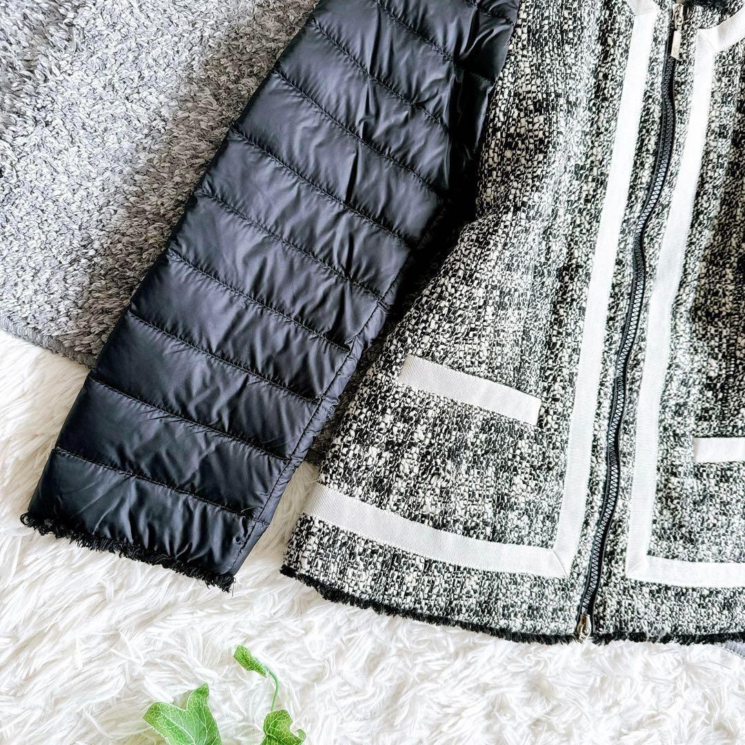 ライトダウン ノーカラー ジャケット PRUNE GIUBBOTTO ツイード ナイロン ブラック 黒 サイズ1 切替 アウター レディース