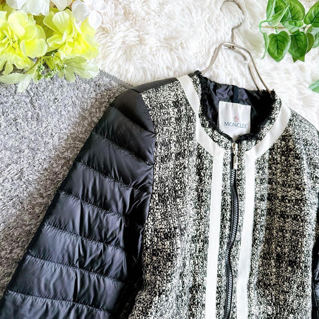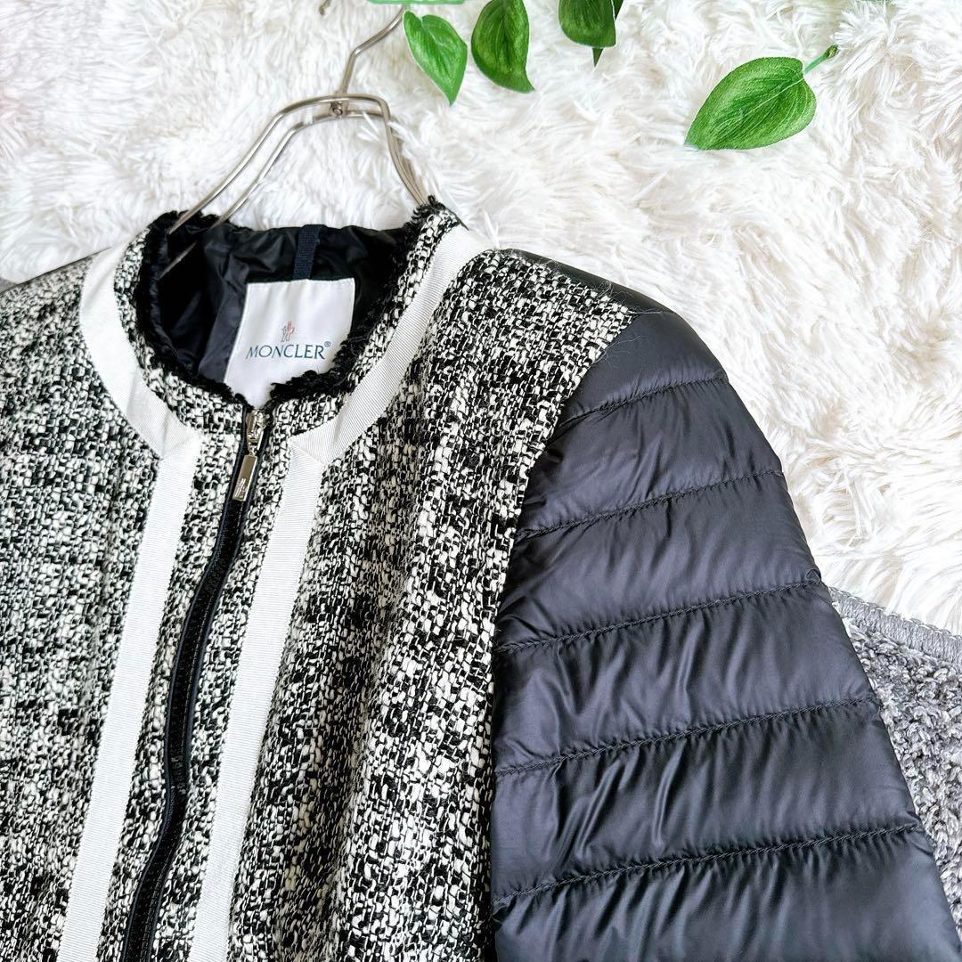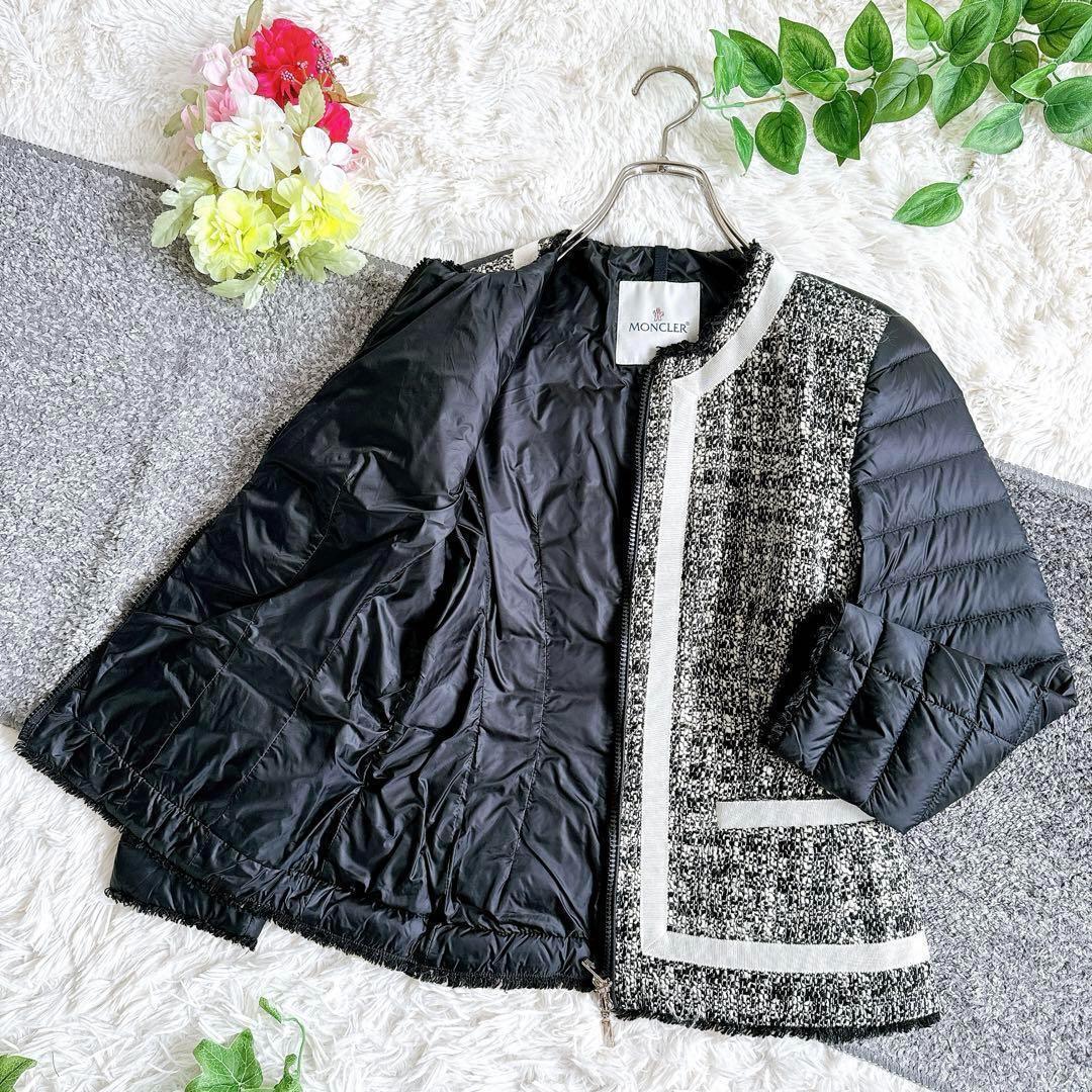 ライトダウン ノーカラー ジャケット PRUNE GIUBBOTTO ツイード ナイロン ブラック 黒 サイズ1 切替 アウター レディース