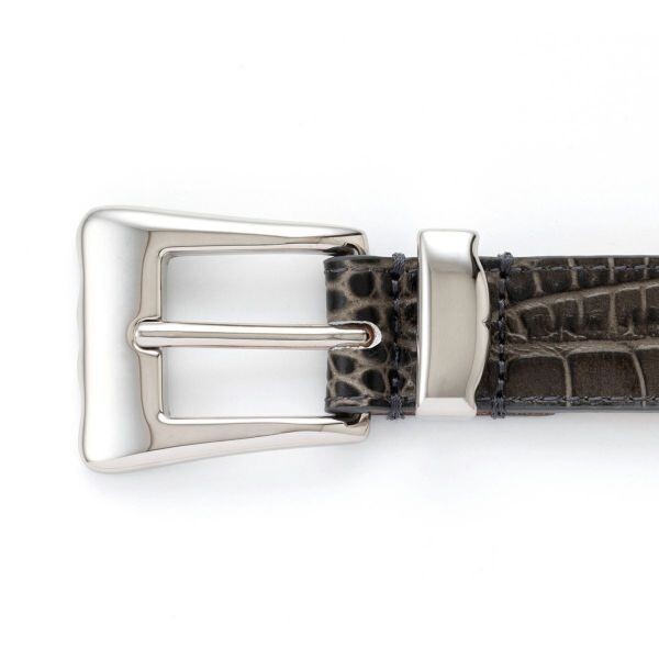 商品説明 | 【Dino Mattia(ディノ マッティア)クロコ型押しプンターレベルト】 スリーピースの金具使いが上品なウェスタン調のエレガントなリアルクロコ型押しプンターレベルト。 ポリッシュ仕上げのバックルがさらにシックなイメージを表現します。 刻印はヌバックレザーに素押し。 ジャケパンやキレイめカジュアルにワンポイントとして。 ブランドロゴの入ったオレンジの巾着型の袋に入れてお届けします。 〈素材〉 牛革 〈サイズ〉 幅2.5cm ※長さはタイトルをご確認ください 〈原産国〉 イタリア ◆Dino Mattia◆ 1975年にミラノ郊外に創設されたベルト工場で誕生した“Dino Mattia” 製品へのこだわりは強く、ラグジュアリーな雰囲気を持つベルトを作る為に、レザー等のマテリアル、ハンドステッチ、そしてベルトのクオリティーにも直接的に関わってくる生産機材にまで及ぶ。 ベルトの表地のみならず、裏地にも積極的にベジタブルタンニンなめしのレザーを使用し、0.1mm単位で薄さや漉き方を調整。その為ベルトを使い込んでいくと体に馴染み、レザーも独特の雰囲気を作り出す。 また、綺麗なステッチを仕上げるために、ミシンは独自に調整した物を使用し、縫製技術をレベルアップさせ、更にはベルトのコバを綺麗に仕上げるために、特殊な裁断機と刃を駆使し、裁断面の美しさを出している。 ハンドステッチへのこだわりを持ち続け、今でもほぼ全てのベルトにバックルを止める際は独自のハンドステッチを入れている。イタリア馬具職人を起用し、確かなるクオリティーによる縫製技術で商品を際立たせる。 こうして作り手の思いが吹き込まれ、Dino Mattiaの製品はつくられている。 |