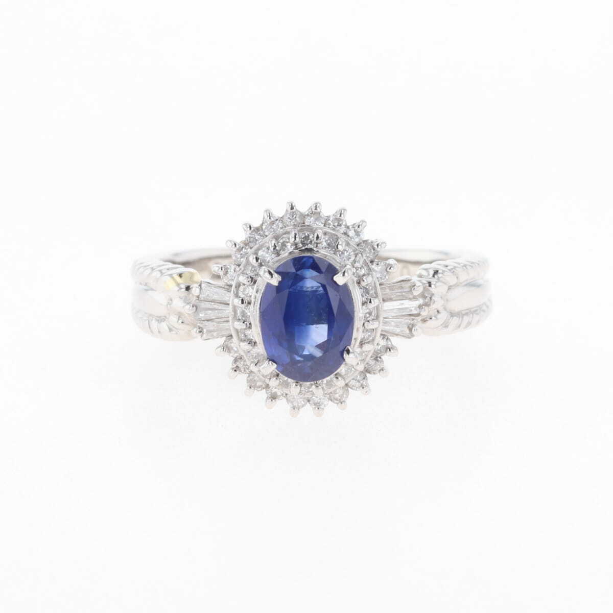 サファイア デザインリング プラチナ 指輪 メレダイヤ リング 13号 Pt900 サファイア ダイヤモンド レディース 【中古】 |