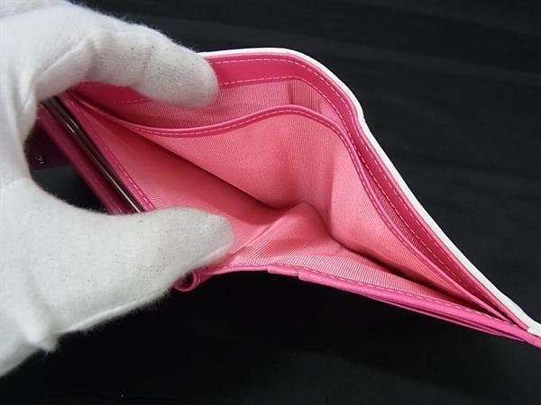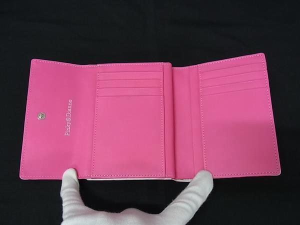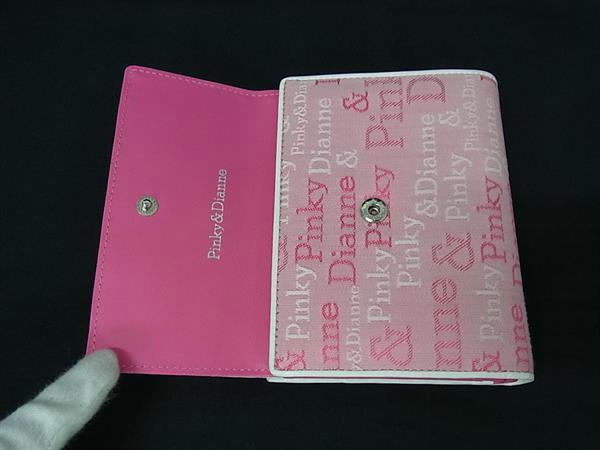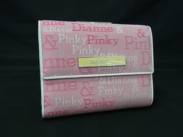 ■極美品■ PINKY & DIANNE ピンキーアンドダイアン キャンバス 総柄 がま口 三つ折り 財布 ウォレット 小銭入れ ピンク系 DH6864