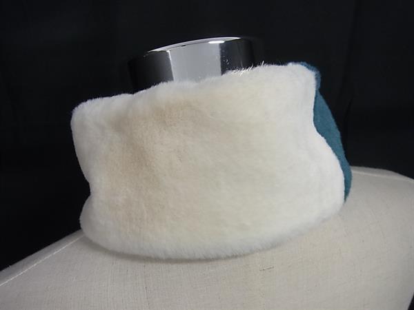 ■新品■未使用■ FURART ファーアート ポリエステル100% ティペット マフラー 防寒具 レディース アイボリー系×グリーン系 DG1056