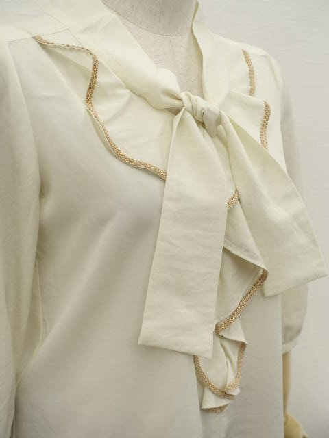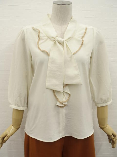 洗える 七分袖 ボウタイネック プルオーバーブラウス 0 アイボリー