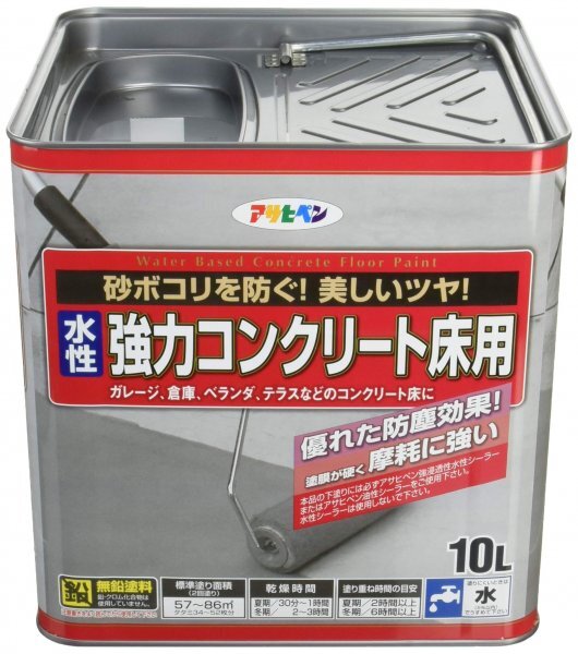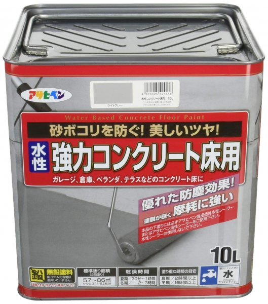 アサヒペンの水性強力コンクリート床用ライトグレーは、ベランダやガレージのコンクリート床を手軽に美しく仕上げることができる水性塗料です。塗膜は硬く、磨耗に強いため、長期間の使用に耐えることができます。乾燥が早く、美しいツヤの仕上がりが得られるため、作業後すぐにお使いいただけます。また、特殊なアクリルエマルションを主成分とし、耐磨耗性や耐ガソリン性、耐水性に優れた特徴があります。
