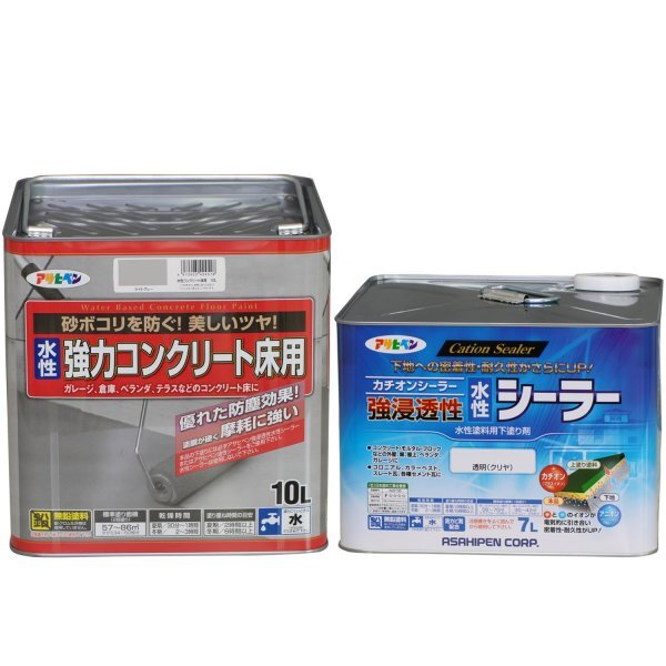 - 用途: ベランダ、ガレージ、玄関、事務所、倉庫などのコンクリート床の防塵、美化、表示および簡易防水
