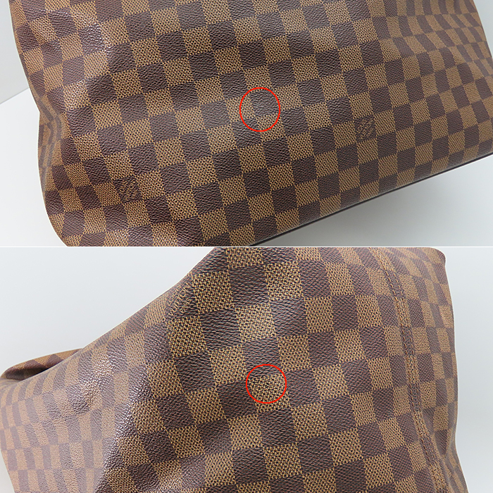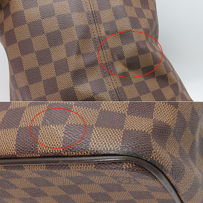 | コンディション | 軽い型崩れ、ダミエキャンバスにスレ、角にスレ、レザーに擦りキズや軽い押しアト、金具に小キズ、内側ポケット内に擦りキズが見受けられます。通常使用による細かなダメージが見受けられますが、目立つダメージや使用に差し障るダメージはなく、スレは少し離れて見るとほとんど分からないレベルです。これからも長くご愛用いただける商品です。 |