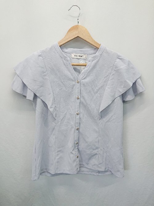 ◇ ⊂ 未使用 MISCH MASCH ミッシュマッシュ フレア 半袖 シャツ ブラウス サイズF ブルー レディース E