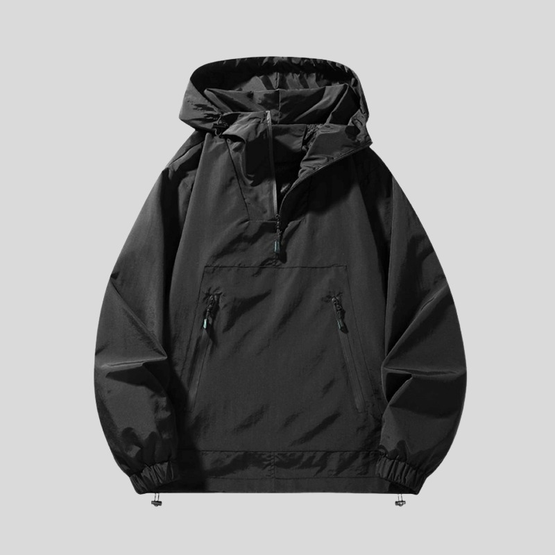 パーカー 撥水 ハーフジップ アノラック メンズ 無地 オーバーサイズ ライトアウター 春秋 ブラック/A1273-S
