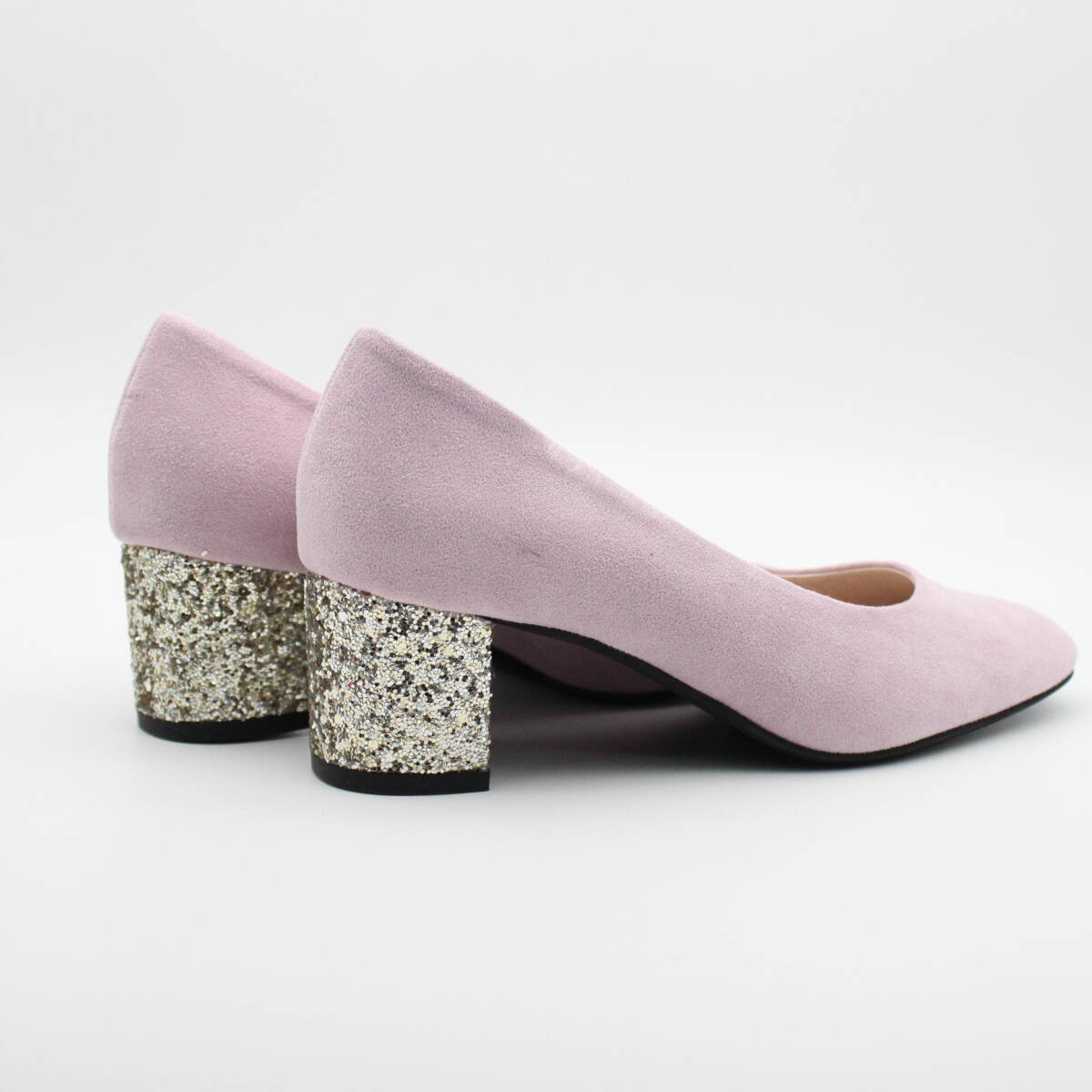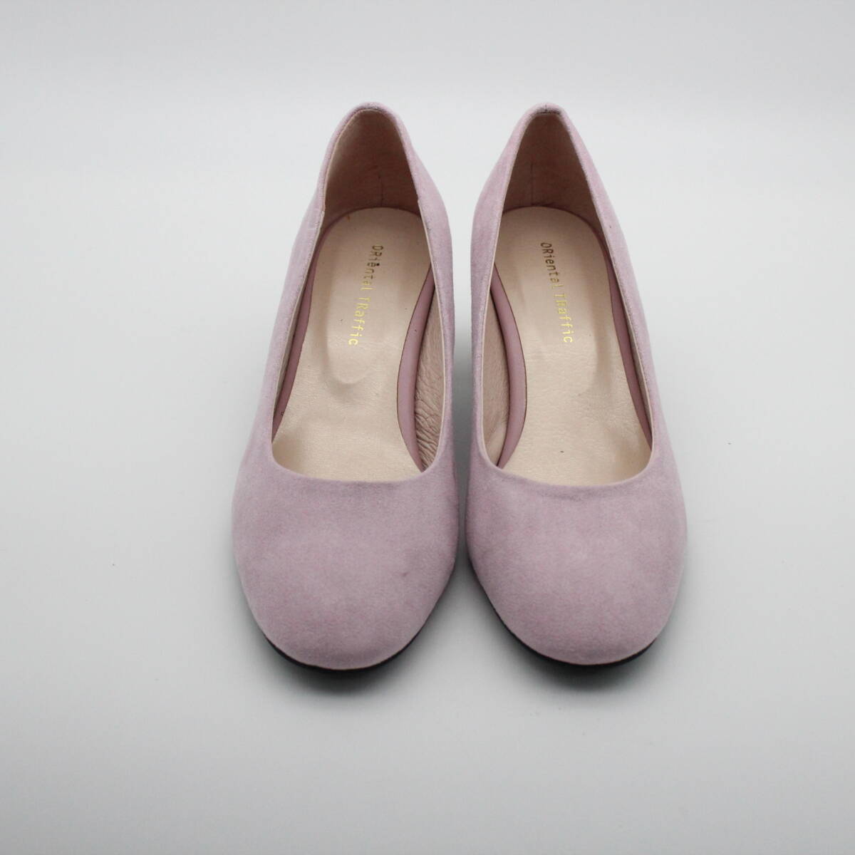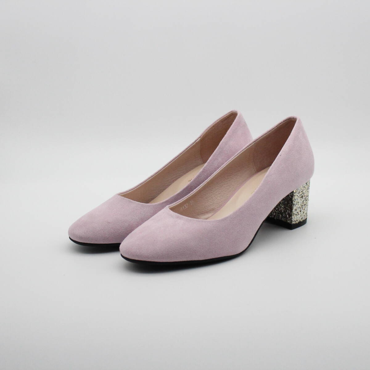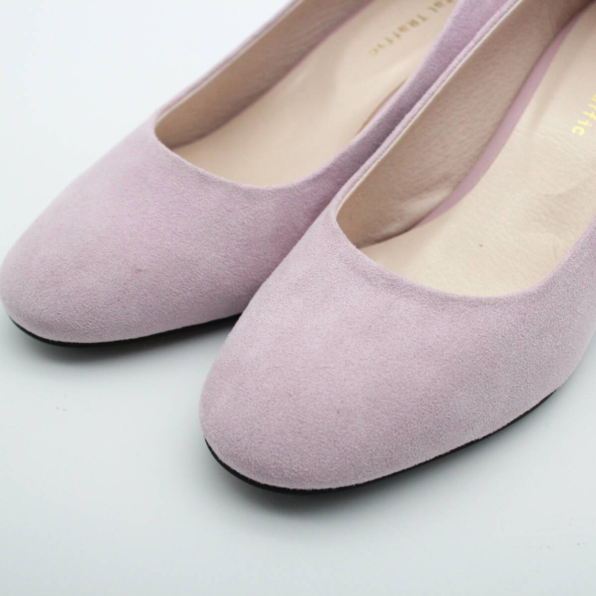 煌びやかなグリッターヒールが目を惹くパンプスはシンプルなデザインに仕上げて取り入れやすいアイテムに。ほんのりスクエアトゥがきちんと感を演出しつつ、チャンキーヒールでカジュアル要素も持ち合わせている優れもの。トレンドのラベンダーカラーは注目の1足。