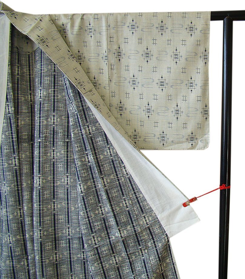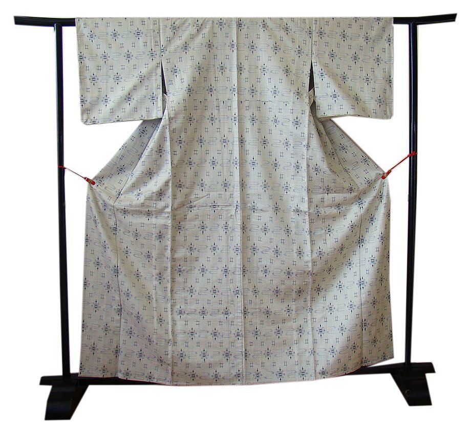 | 商品説明 | こちらのお品は「単衣」ですので5月、6月、9月にお召頂ければと思います。 着物には、大きく分けて「袷(あわせ)の着物」と「単衣(ひとえ)の着物」と「夏着物」があります。 反物(表地)を着物に仕立てるときに、裏地類をつけるものを袷の着物、 つけないものを単衣の着物と呼び、胴裏や八掛といった裏地がつかない一枚ものの着物です。 また裏地がないため、座る時などにヒップのラインが目立たないよう、 居敷当て(いしきあて)の生地をつけることもあります。 居敷当ては付いておりません、 しなやかでさらりとして手触り良く着心地良い涼やかな風合いの十日町紬地、 灰黄緑色地に黒、グレー色の井桁等の絣の織柄が 洒落感高い粋な着物姿を演出しております。 |