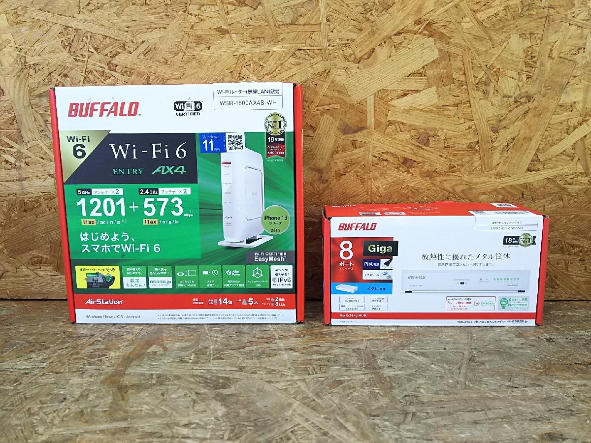 BUFFALO WSR-1800AX4S-WH・LSW5-GT-8NS 無線ルーター・8ポート ギガスイッチングハブ ーーーーーーーーーーーーーーーーーーーーーーーーーーーーーーー ●メーカー:BUFFALO ●型 番:WSR-1800AX4S-WH・LSW5-GT-8NS ●品 名:無線LANルーター・8ポート ギガスイッチングハ・ ーーーーーーーーーーーーーーーーーーーーーーーーーーーーーー ●テスト用機器に繋いで、無線LANで接続ができることを確認しました。 ●ハブは通電のみ確認しています。 ●ルーターは初期化済みです。 ●専門的な商品の為、上記の簡単な操作のみ確認しています。 アフターサポートもできませんのでご了承ください。 ◎付属品 本体、スタートアップガイド、スタンド、ACアダプター、LANケーブル、 取扱説明書、ACコード、化粧箱 ◎外観 本商品は中古品です。経年・使用に伴う擦り傷/汚れがあります 外観等を著しく気になさる方や新品に近い美品をご希望の方はご遠慮ください ●詳しい仕様等、商品についてはメーカーサイトなどをご参照ください ※保証期間内であっても,水没・落下などお客様が原因で起こった不具合は保証対象外です ※ハードウェア、ソフトウェアに関するサポートは行ってません