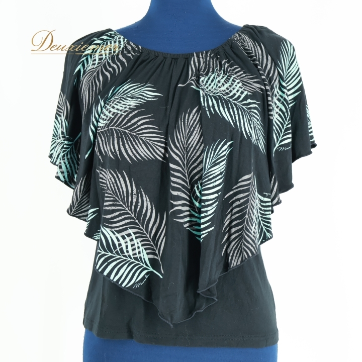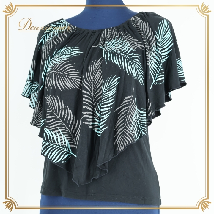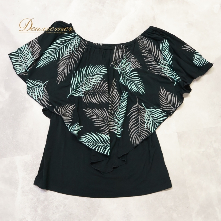 | 【商品名】フラダンス衣装 トップス ブラウス 【サイズ】M表記 平置き実測:総丈約54cm(裾~肩部まで)、身幅約40cm、ウエスト約39cm ※実測の為、多少の誤差はご了承ください 【仕様】 ・若干伸縮性有り ------------------------------------ 【ポイント】 ▽Maunaloa マウナロア ▽ブラック×グリーン ▽伸縮性のある生地で動きやすい ------------------------------------ 【撮影時使用トルソー】 種 類:女性用トルソー9号 (一般的に使用されるサイズです) サイズ:肩幅約37cm、バスト約88cm、ウエスト約66cm、ヒップ約89cm |