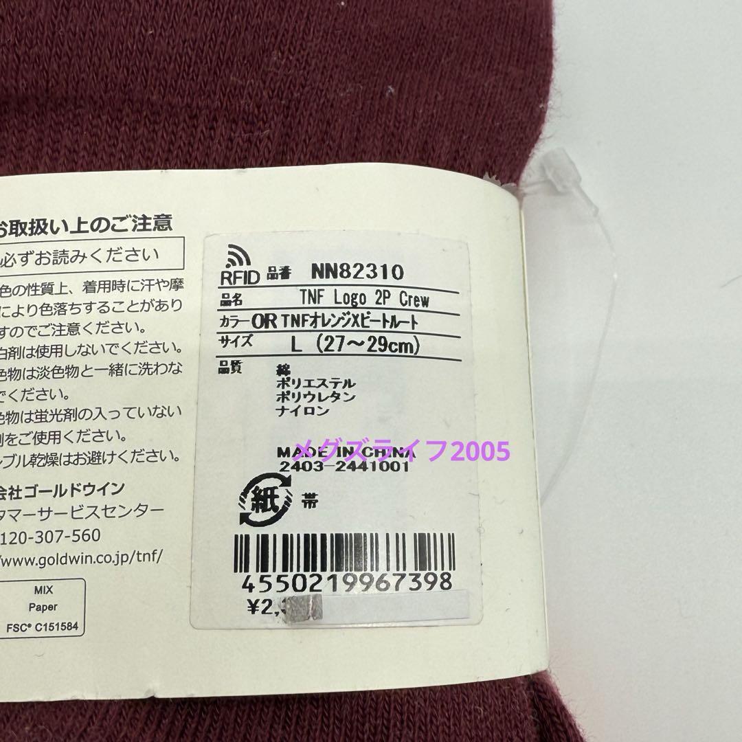 TNF Logo 2P Crew ソックス 靴下 ユニセックス