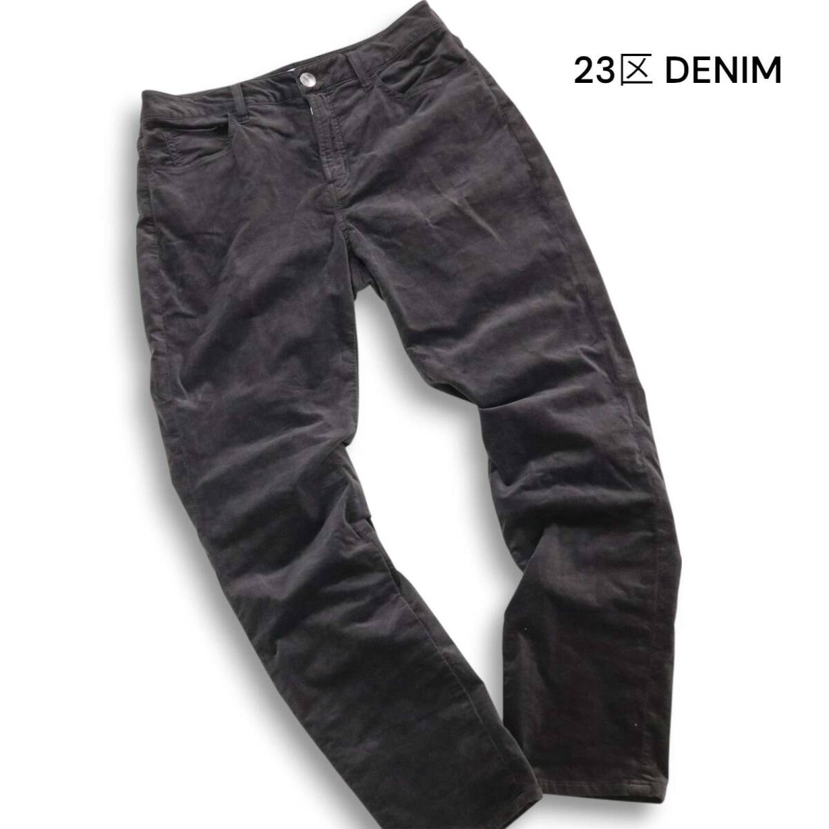 23区 DENIM 秋冬 フェイク スウェード★ ストレッチ テーパード パンツ Sz.44 レディース 大きいサイズ