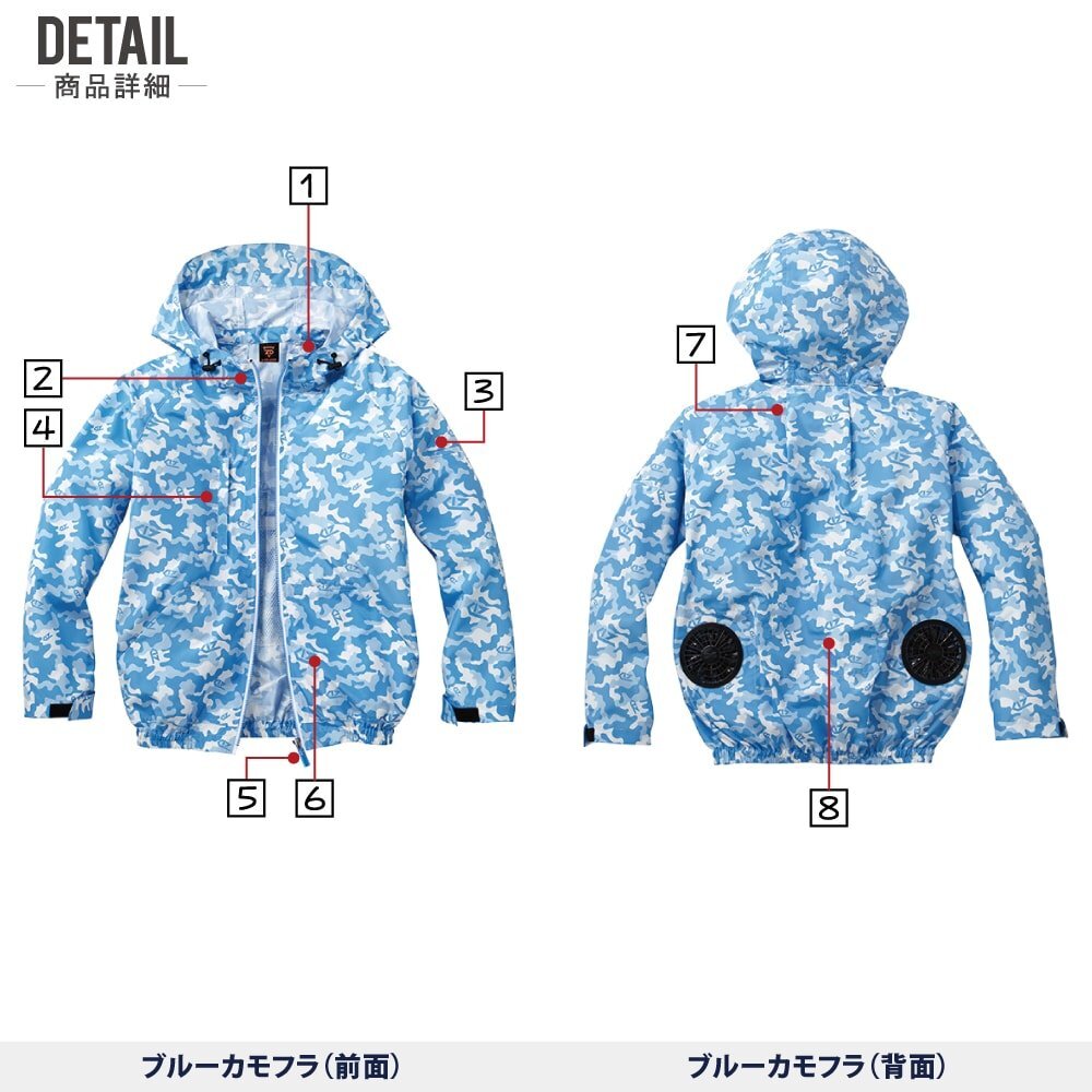 | 空調服説明 & 状態 & 素材 & サイズ & カラー 【画像参照】 | 届いてすぐにお使いいただけるおすすめセット商品! ■空調服 ≪説明≫ トレンドを掴んだカモフラ空調服 ≪状態≫ 新品・正規品 ≪素材≫ ポリエステル100% 高密度タフタ ≪特徴≫ ・調整ヒモ ・左袖ペン差し ・左内側バッテリーポケット ・胸ファスナーポケット ・保冷剤メッシュポケット ・首元タック入り ・袖口調整ボタン ・樹脂ボタン ・樹脂ファスナー ≪サイズ≫ タイトル名【 画像参照 】 ≪カラー≫ タイトル名【 画像参照 】 | セット 内容 | ■バッテリーセット ≪内容≫ ・4時間対応 バッテリー×1 ・バッテリーホルダー×1 ・急速AC充電アダプター×1 充電時間:約4時間 出力:7.2V、6V、5V、3.3V(4段階) 定格容量:3250mAh 重量:143g 連続使用時間 7.2V設定時:約4時間 6V設定時:約6時間 5V設定時:約9時間 3.3V設定時:約20時間 ゆらぎモード時:約4.6時間 ■ファンセット ≪カラー≫ タイトル名【 画像参照 】 ≪内容≫ ・ファン×2 ・ケーブル×1 風量 7.2V設定時:24.4リットル/秒 6V設定時:21.1リットル/秒 5V設定時:18.4リットル/秒 3.3V設定時:12.9リットル/秒 ■:本商品の【 サイズ・カラー 一覧(服単品) 】 ■:本商品の【 フルセット(服+バッテリー+ファン) 】 ■:本商品の【 電池式セット(服+電池ボックス+ファン) 】 ■:本商品の【 ファンセット(服+ファン) 】 ■:本商品の【 大風量フルセット(服+大風量対応バッテリー+パワーファン) 】 ■:本商品の【 備品 一覧 】 □:綿100% 空調服 一覧 □:ポリエステル100% 空調服 一覧 □:フルハーネス 空調服 一覧 |