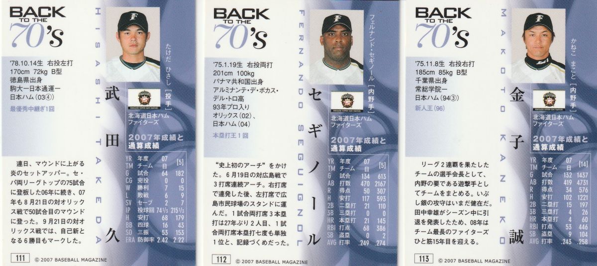 ●2007BBM/ヒスコレ【武田久,セギノール,金子誠】現役レギュラー3種:日本ハム