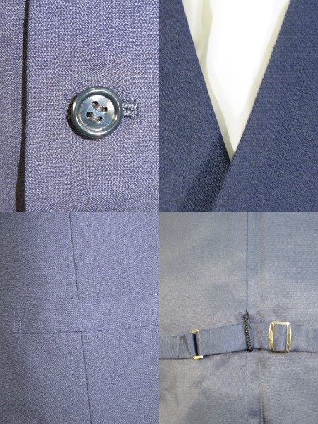 ◆製品番号 9000-1 ◆サイズ BE4 身長 165 胸囲 98 胴囲 92 実寸 上着 : 肩幅 36 着丈 53 胸囲 50×2 単位:cm (多少の誤差は、ご了承ください。) ◆色・柄 ネイビー系 ◆品質 ウール 100% / 裏 ポリエステル 100% ◆仕様 5ボタン 尾錠 ◆生産国 日本製 ◆シーズン 秋冬 ◆参考価格 ★製造メーカーのアウトレット品の為、特別価格にて大放出!!! |